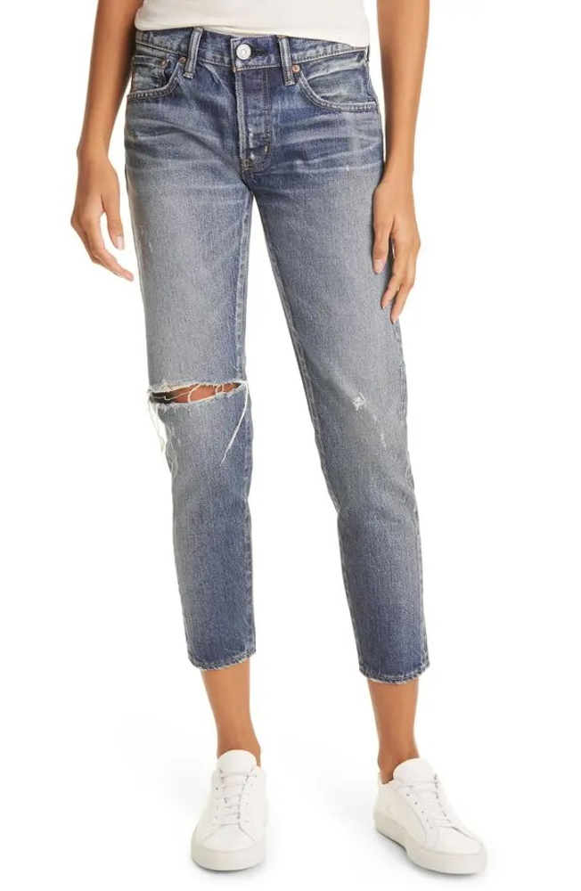 - Style: Pittsgrove Mid Rise Distressed Tapered Ankle Jeans