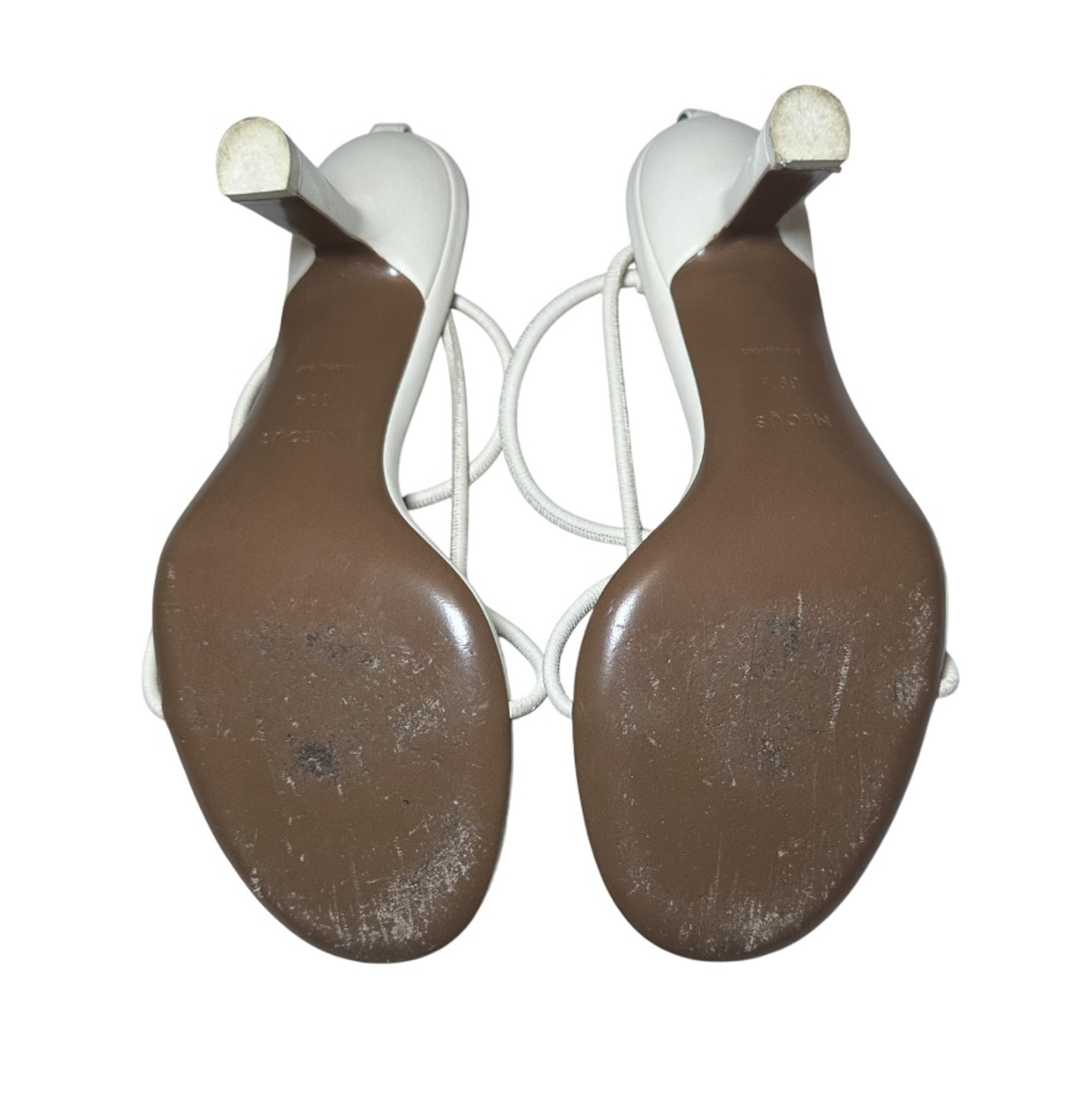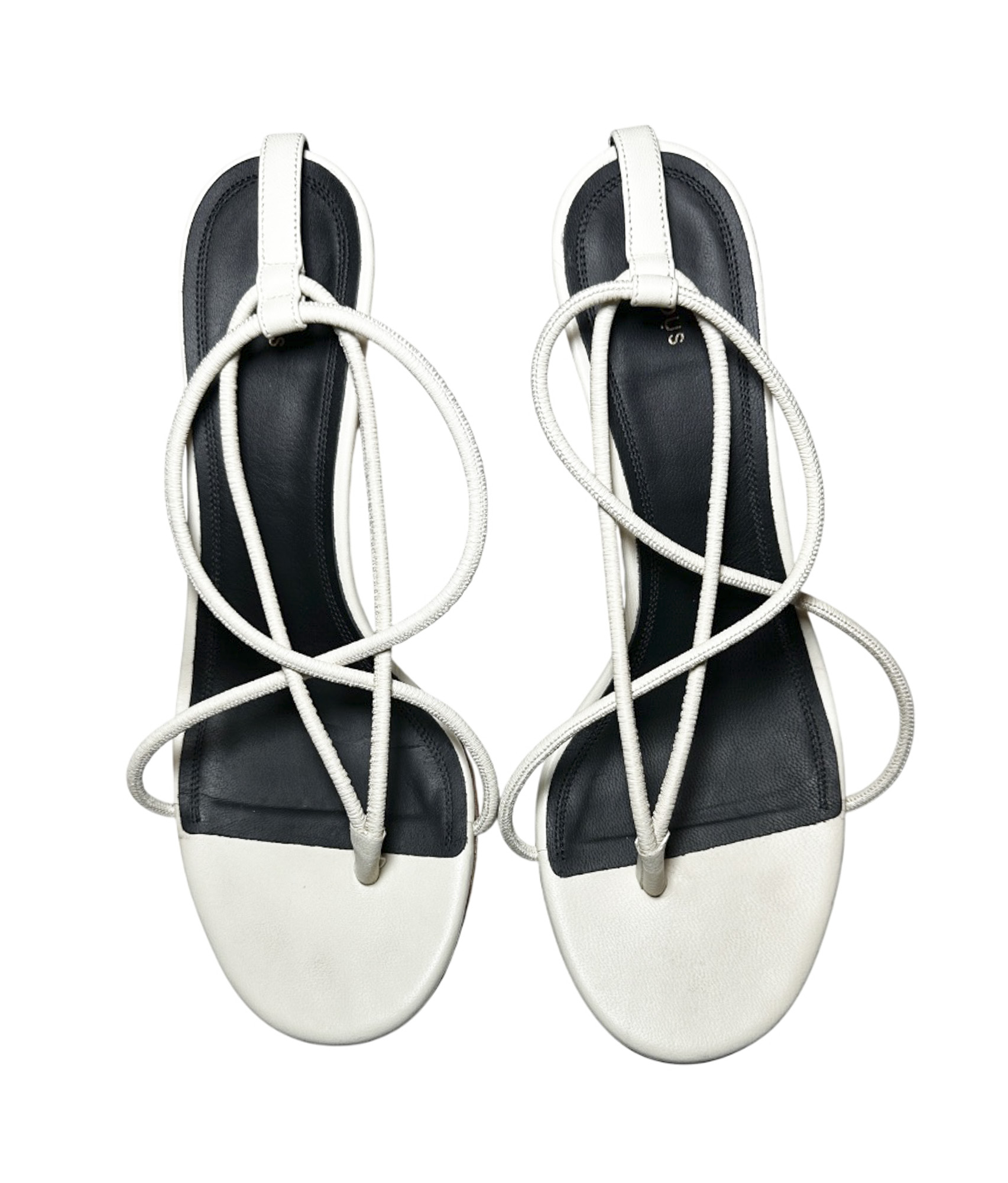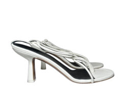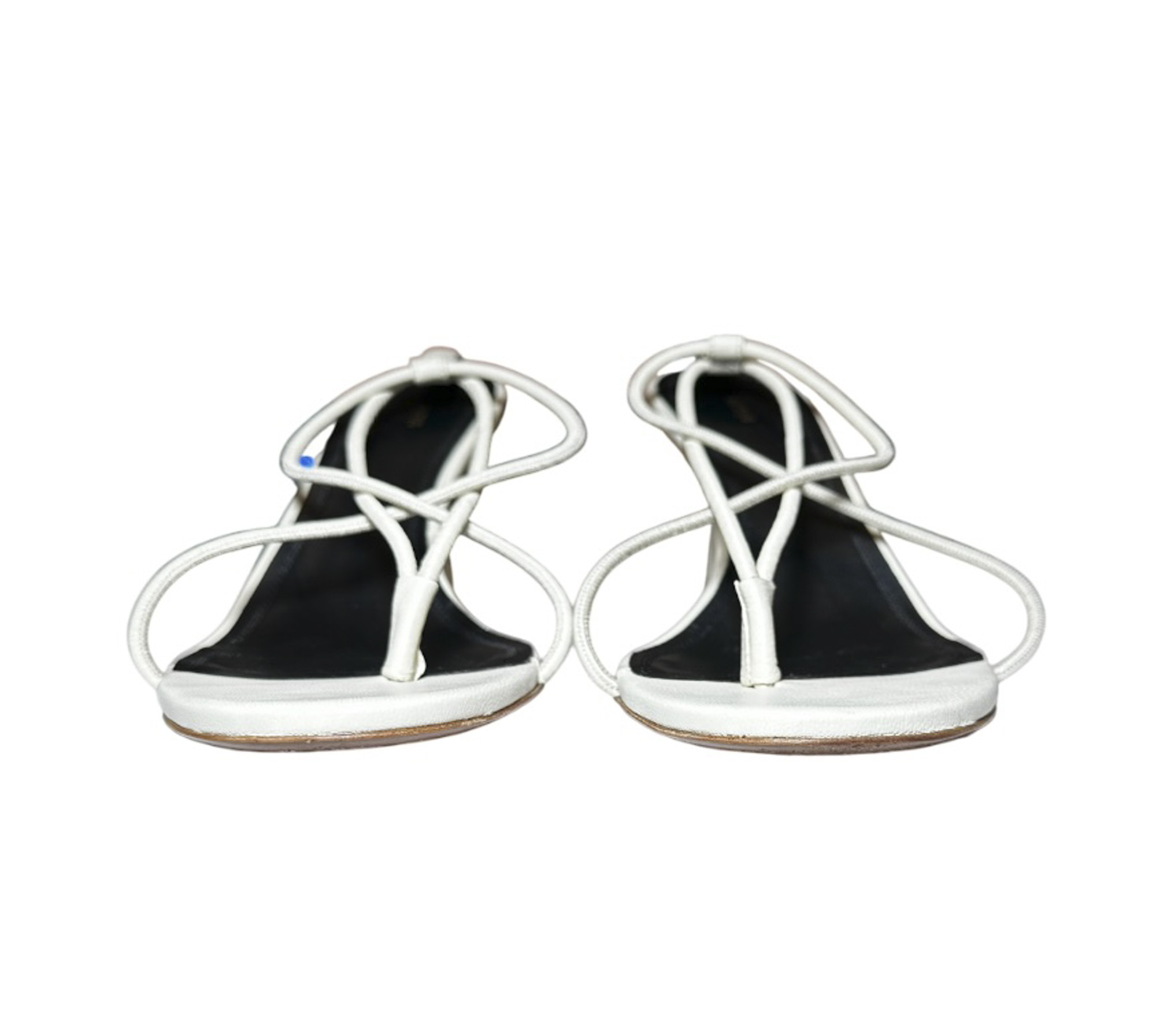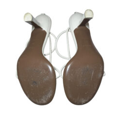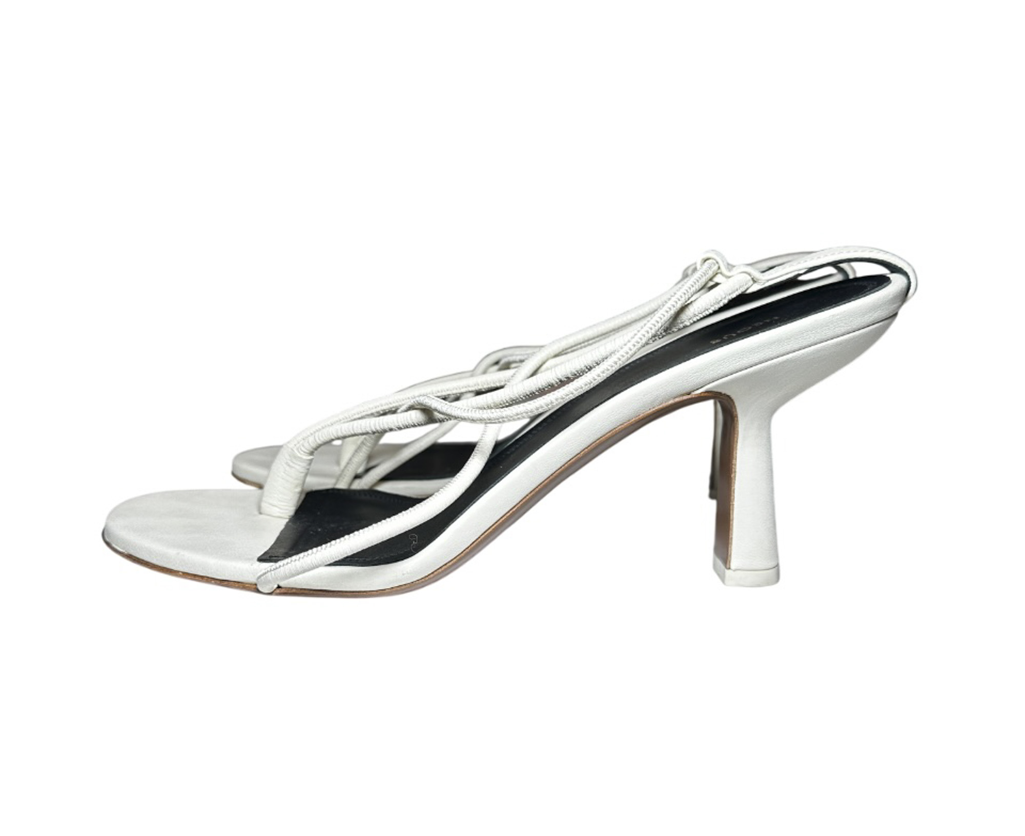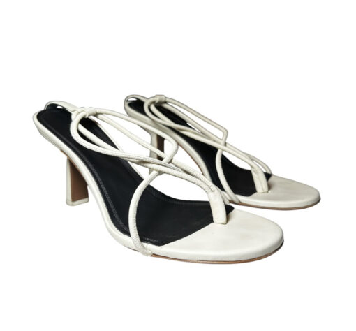 - Style: Gloas Ivory Stretch Strappy Leather Thong Heels Sandals
