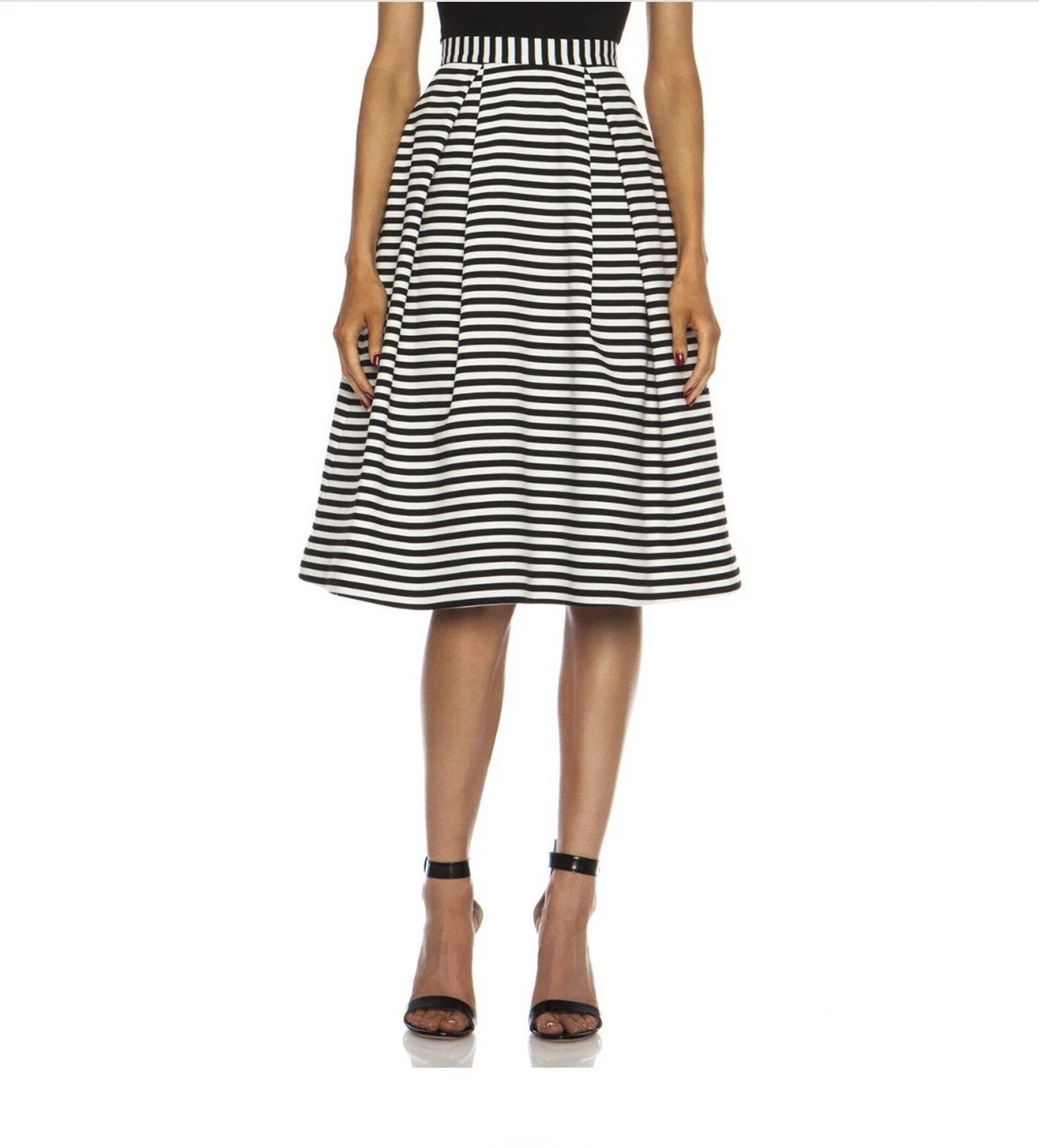 - Style: BLACK STRIPED A-LINE MIDI SKIRT