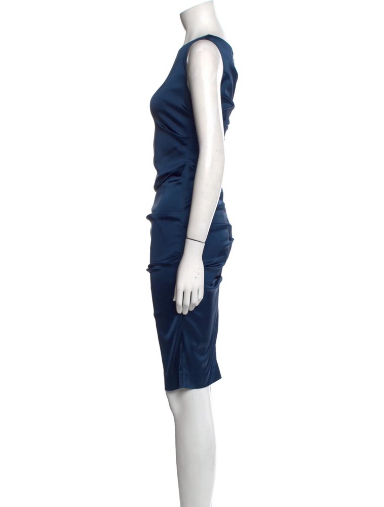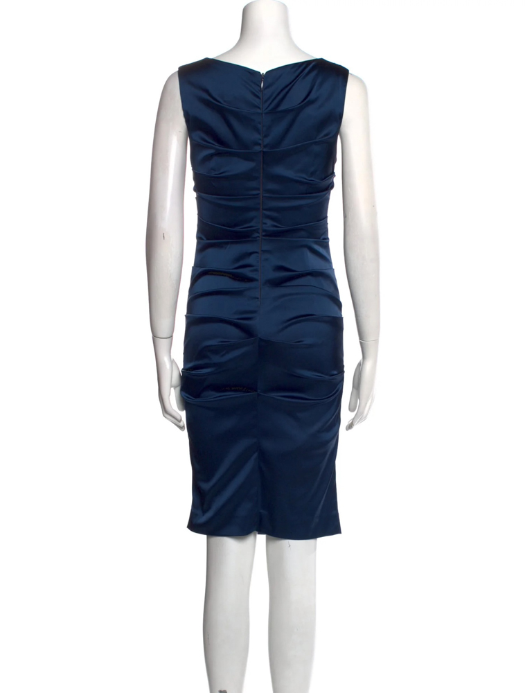 - Style: Satin Bateau Neck Sleeveless Ruched Mini Dress