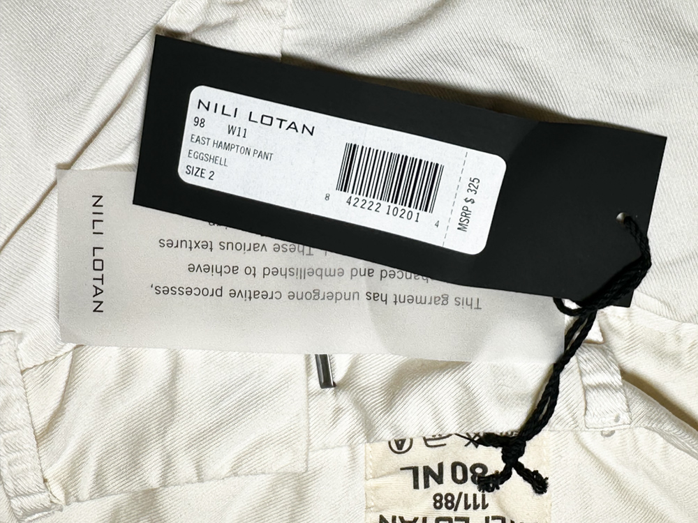 Nili Lotan NWT East Hampton Stretch Cotton Twill Ankle Crop Pants 2 Eggshell