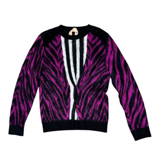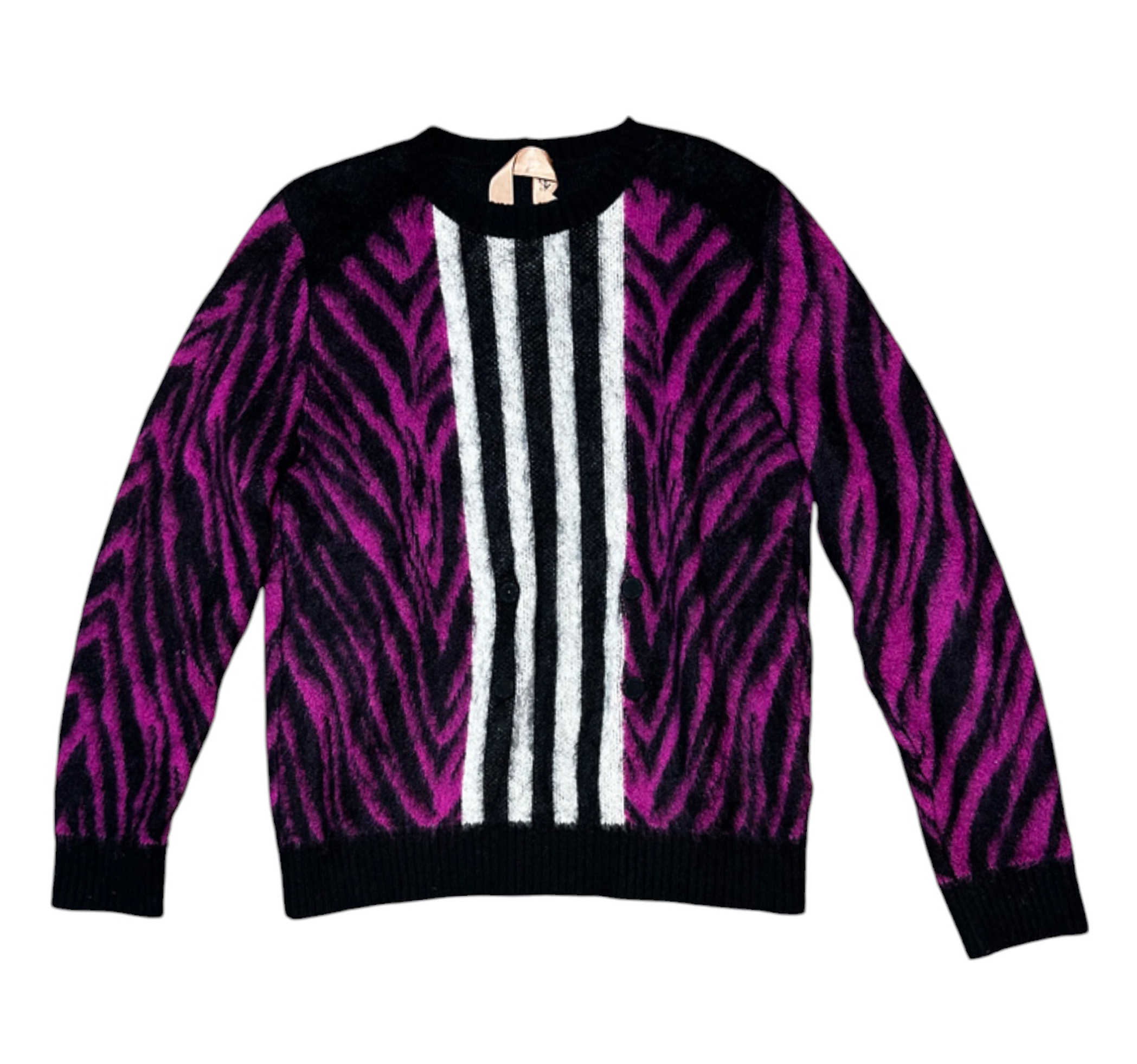 - Style: Pink Animal Print Mohair Wool Knit Crew Neck Pullover Sweater