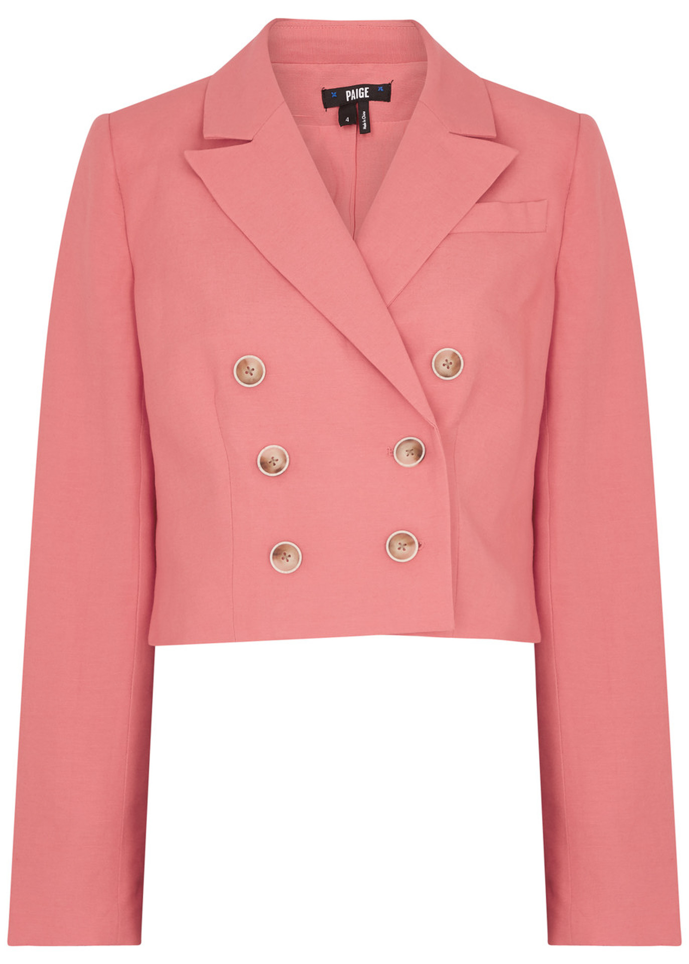 - Style: Eclipse Pink Linen Double Breasted Cropped Jacket Blazer