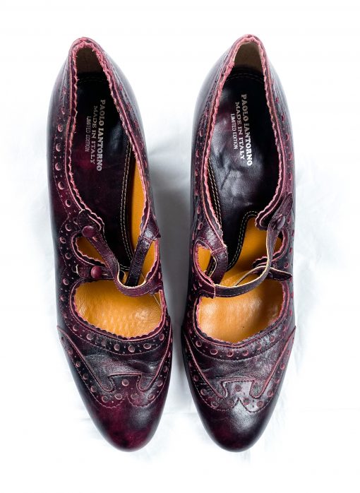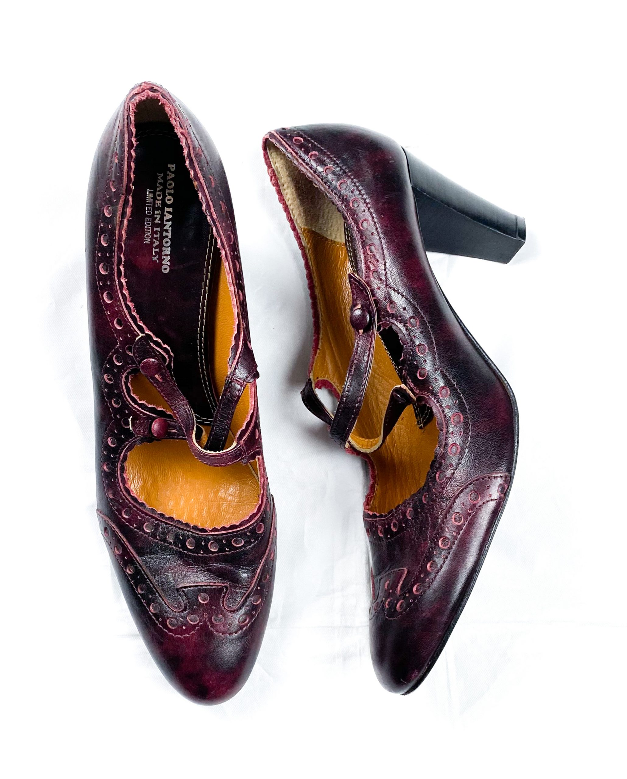 PAOLO LANTORNO VINTAGE BURGUNDY LEATHER BROGUE HEELS PUMPS SIZE 41