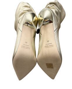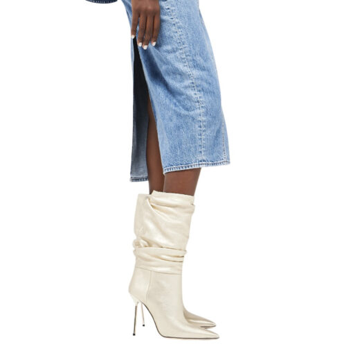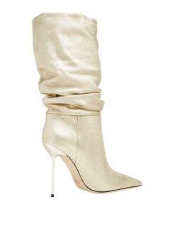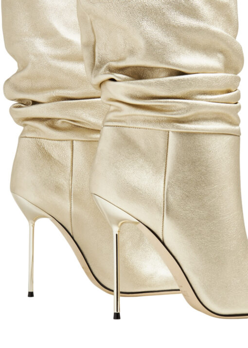 - Style: Lidia Slouchy Gold Leather Heels Boots