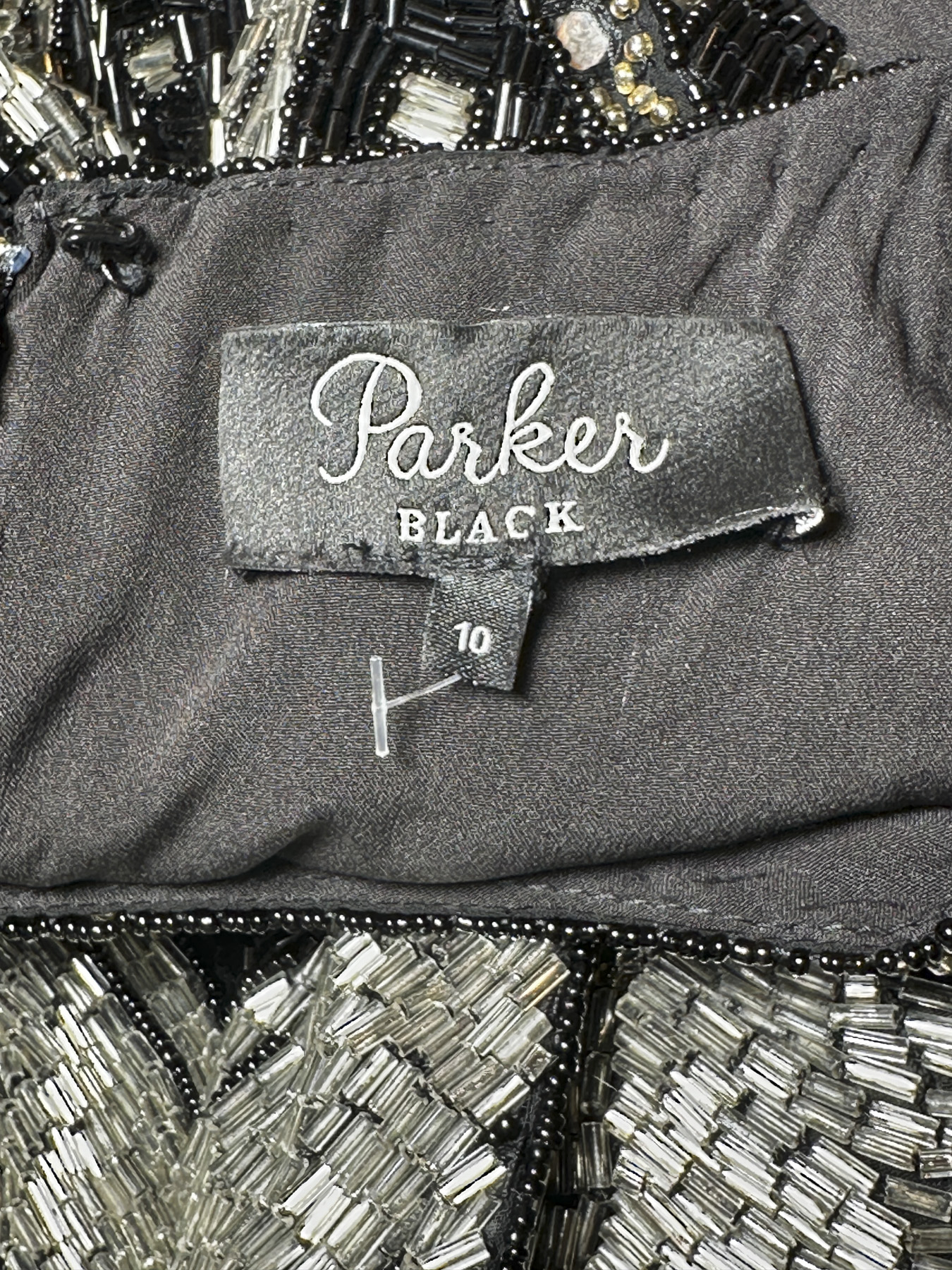 Parker Black Sequin Beaded High Neck Tulip Gown Maxi Dress Size 10