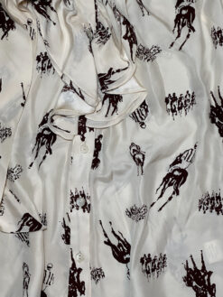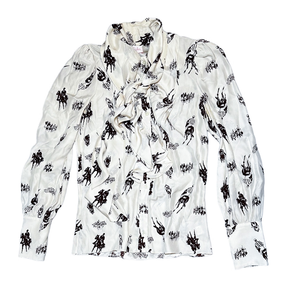 - Style: Vintage Equestrian Horse Print Silk Long Sleeve Tie Neck Blouse