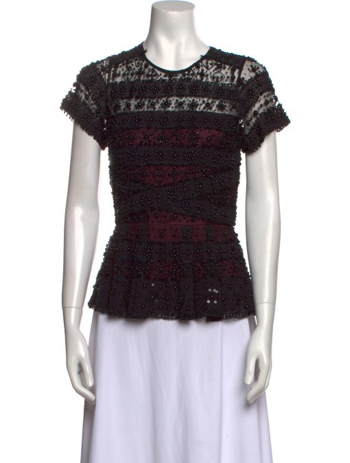 - Style: BLACK BEADED EMBELLISHED PEPLUM TOP BLOUSE