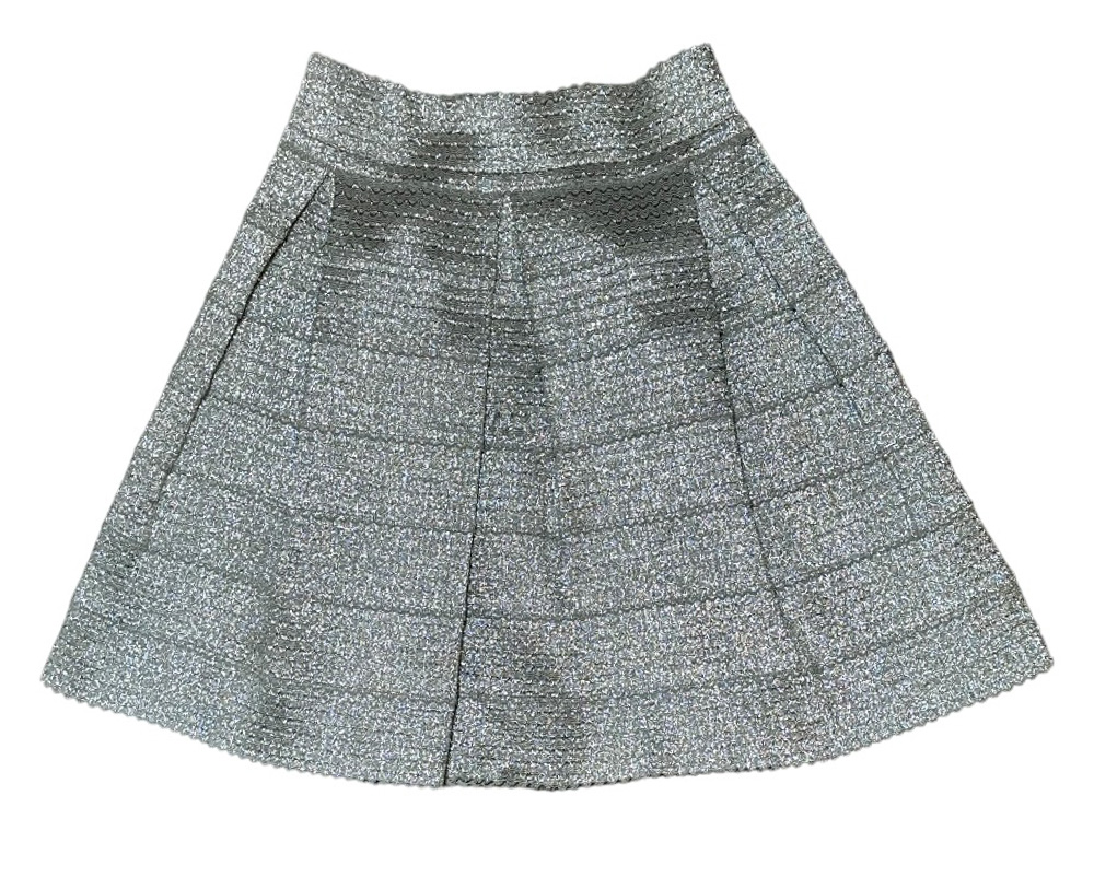 - Style: Zambi Silver Metallic A-Line Flared Mini Skirt