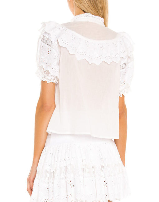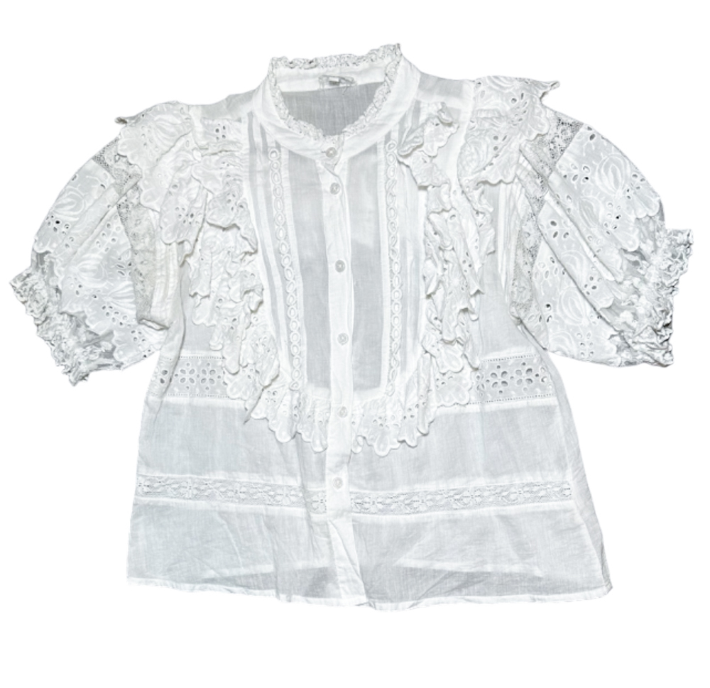 Place Nationale Le Roche White Eyelet Lace Cotton Ruffled Top Blouse 1/Small