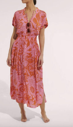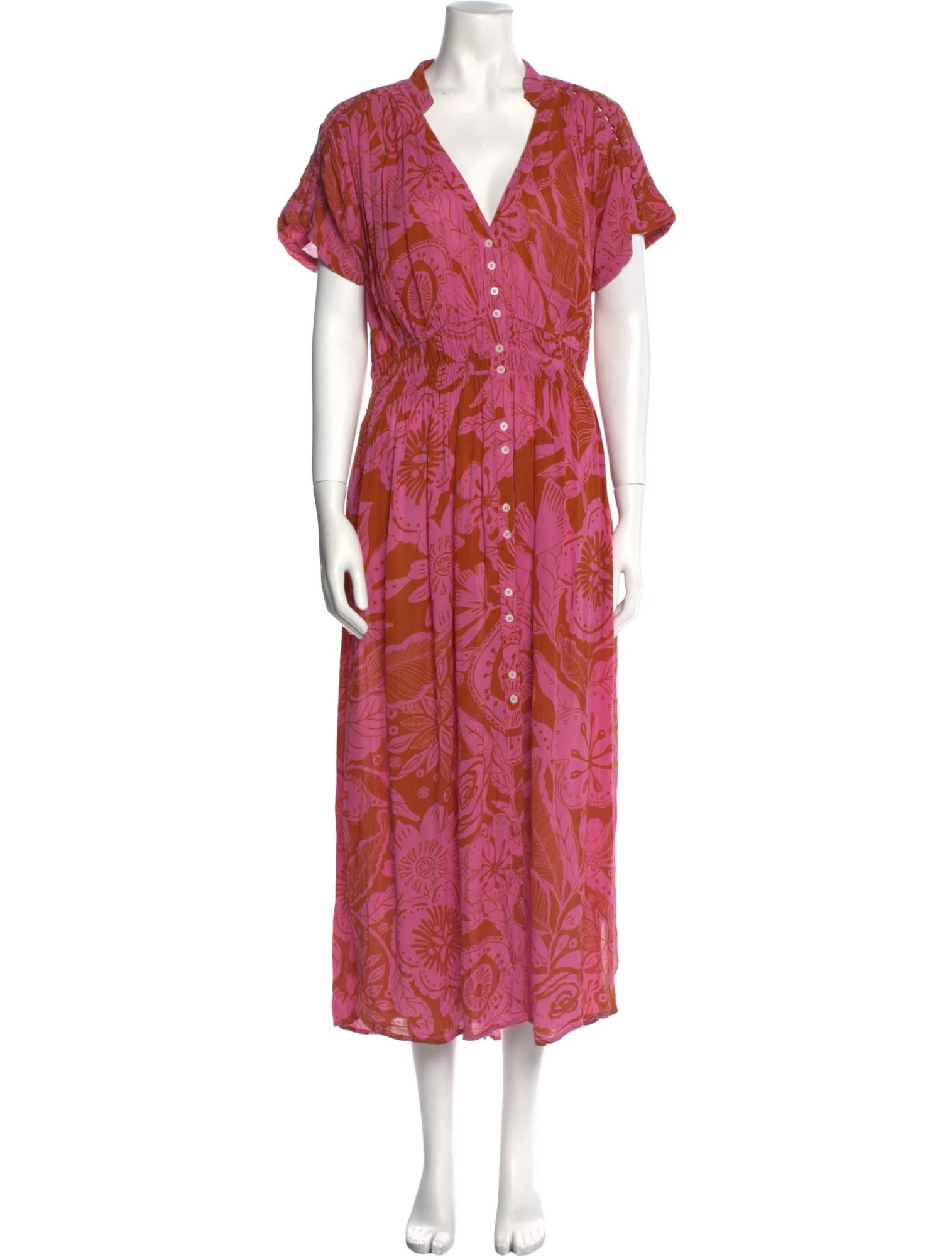 - Style: Becky Pink Floral V-Neck Flowy Boho Maxi Dress