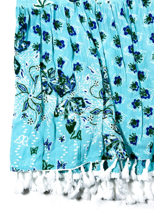 - Style: GREEN PRINTED TASSEL FRINGE MINI DRESS