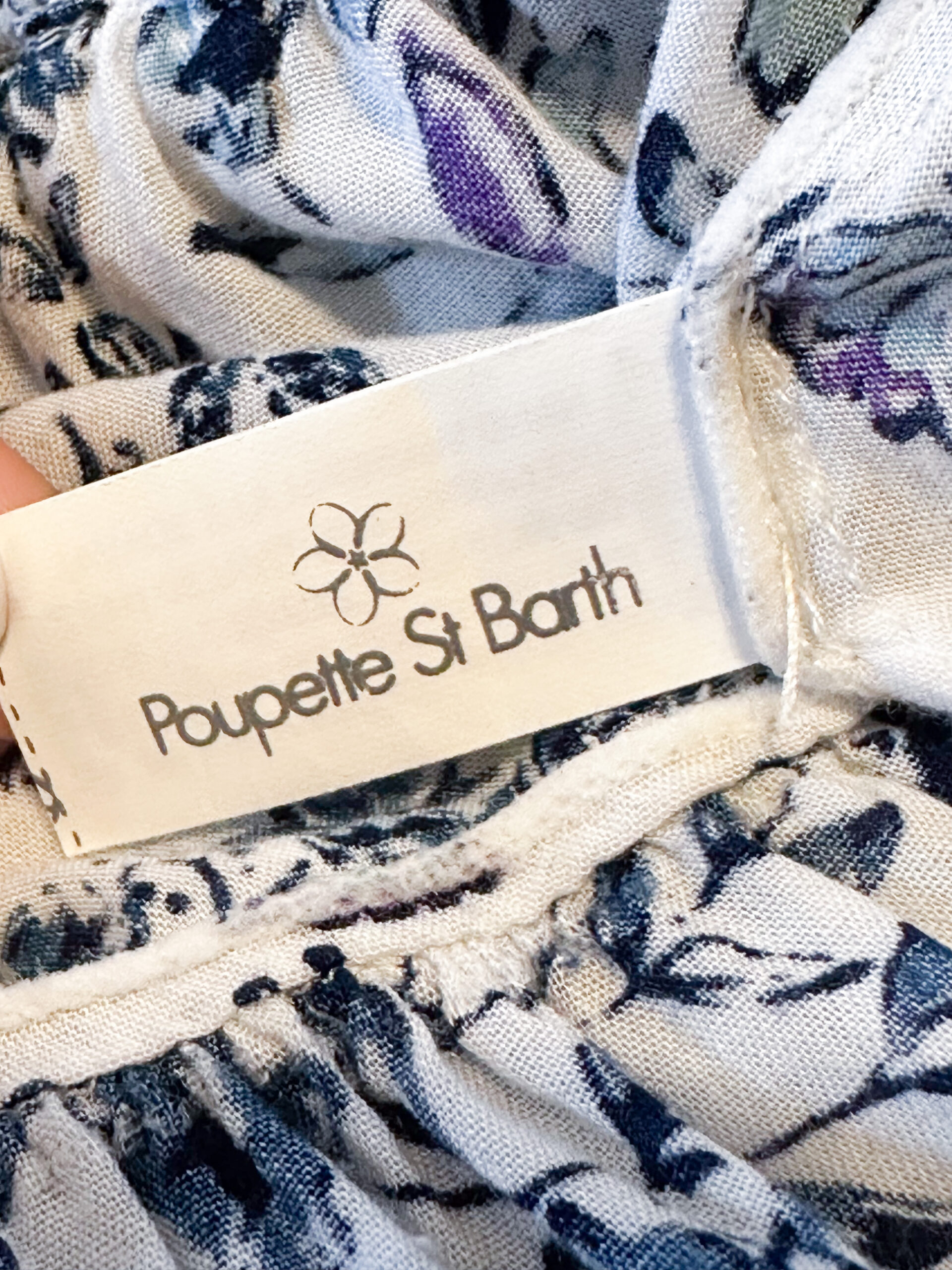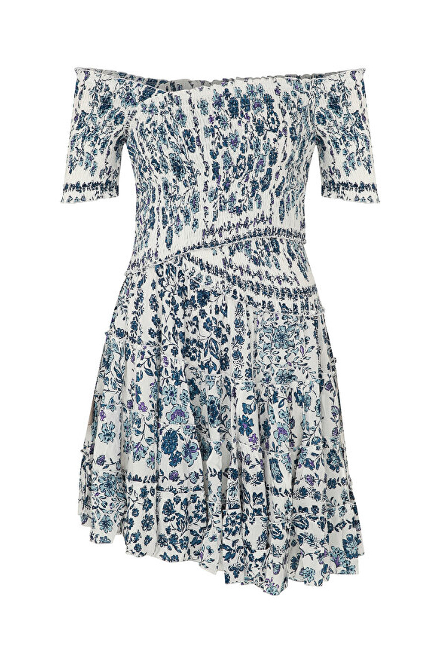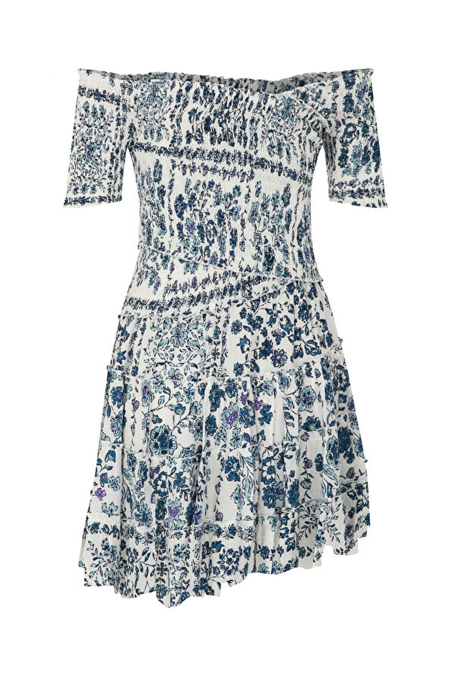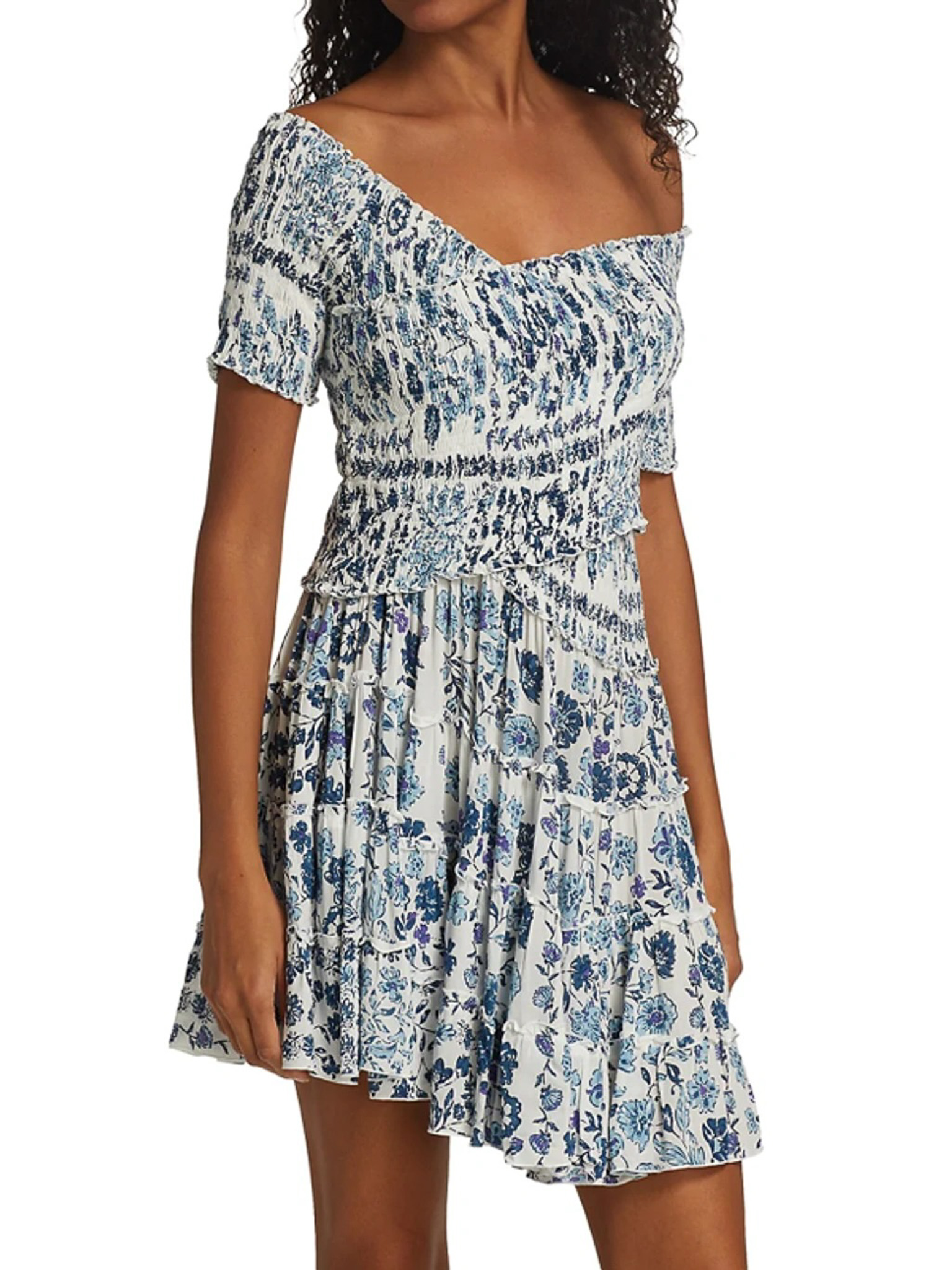 Poupette St Barth Soledad Floral Smocked Off Shoulder Asymmetric Mini Dress Small
