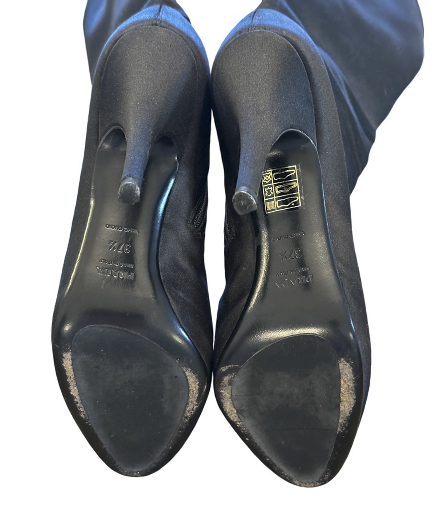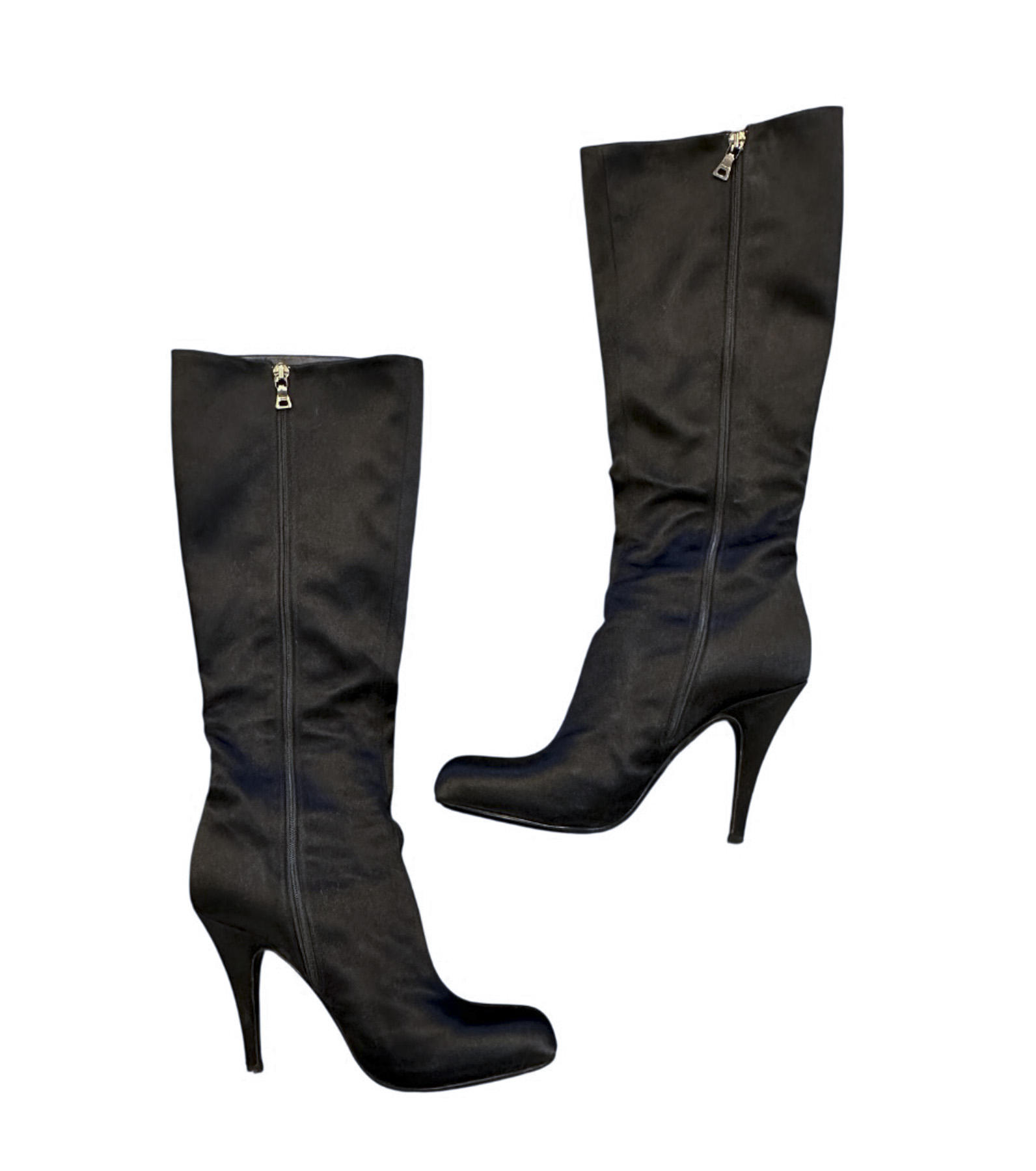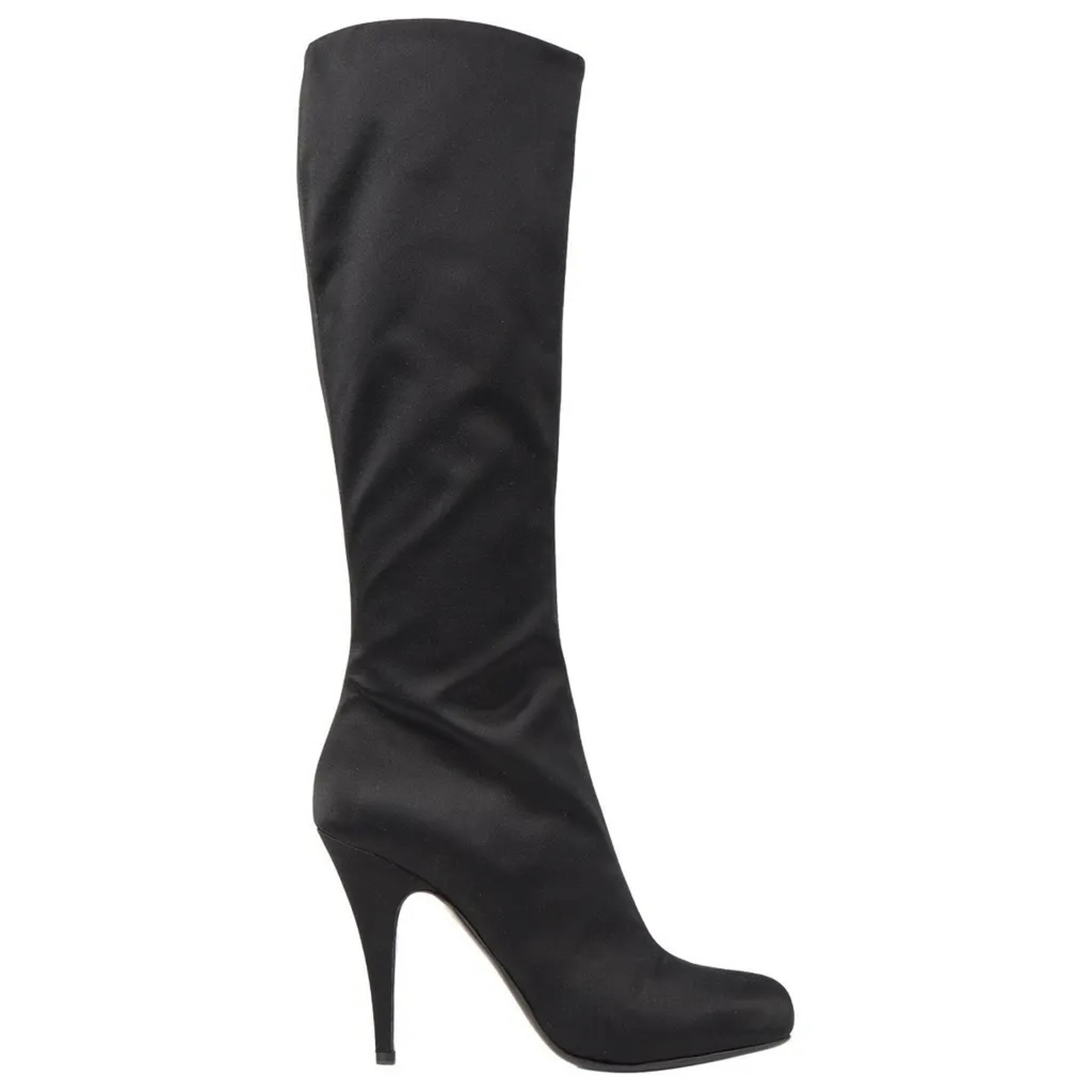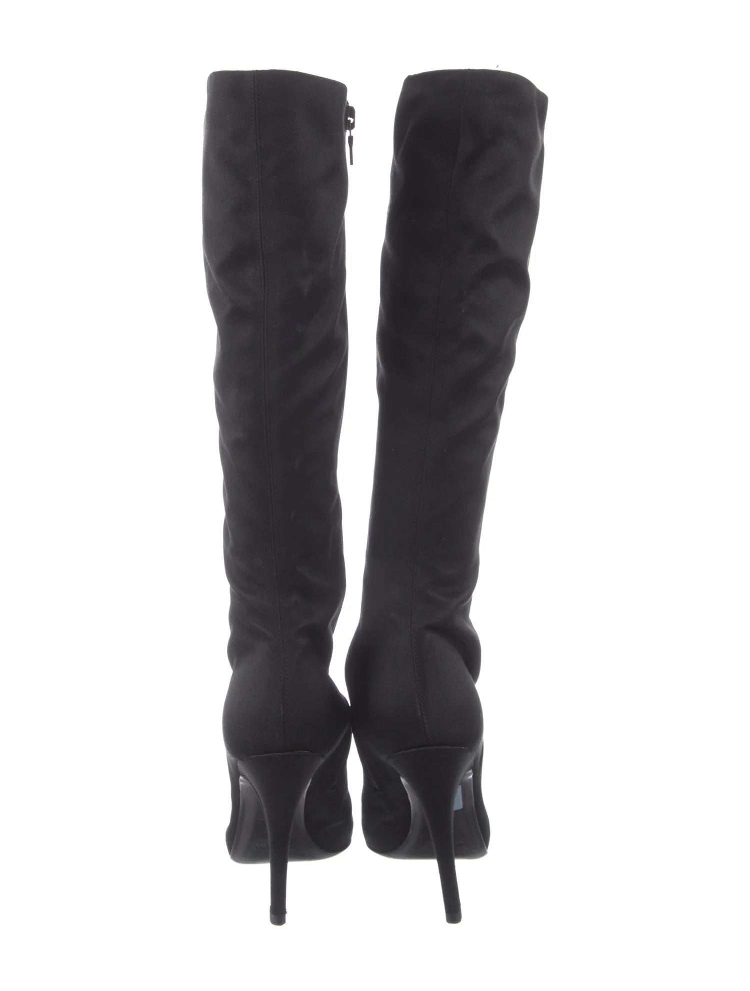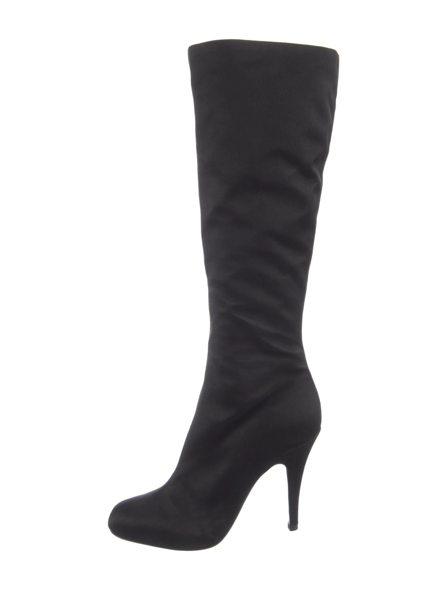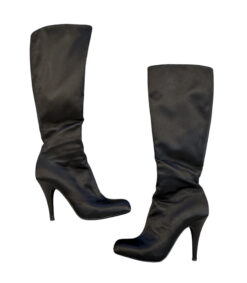 - Style: Black Satin Knee High Almond Toe Heels Boots