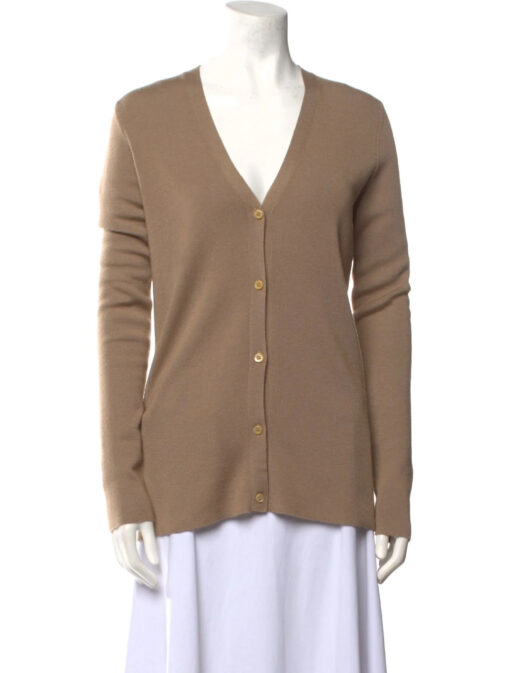 - Style: Brown Cashmere Silk Knit V-Neck Cardigan Sweater