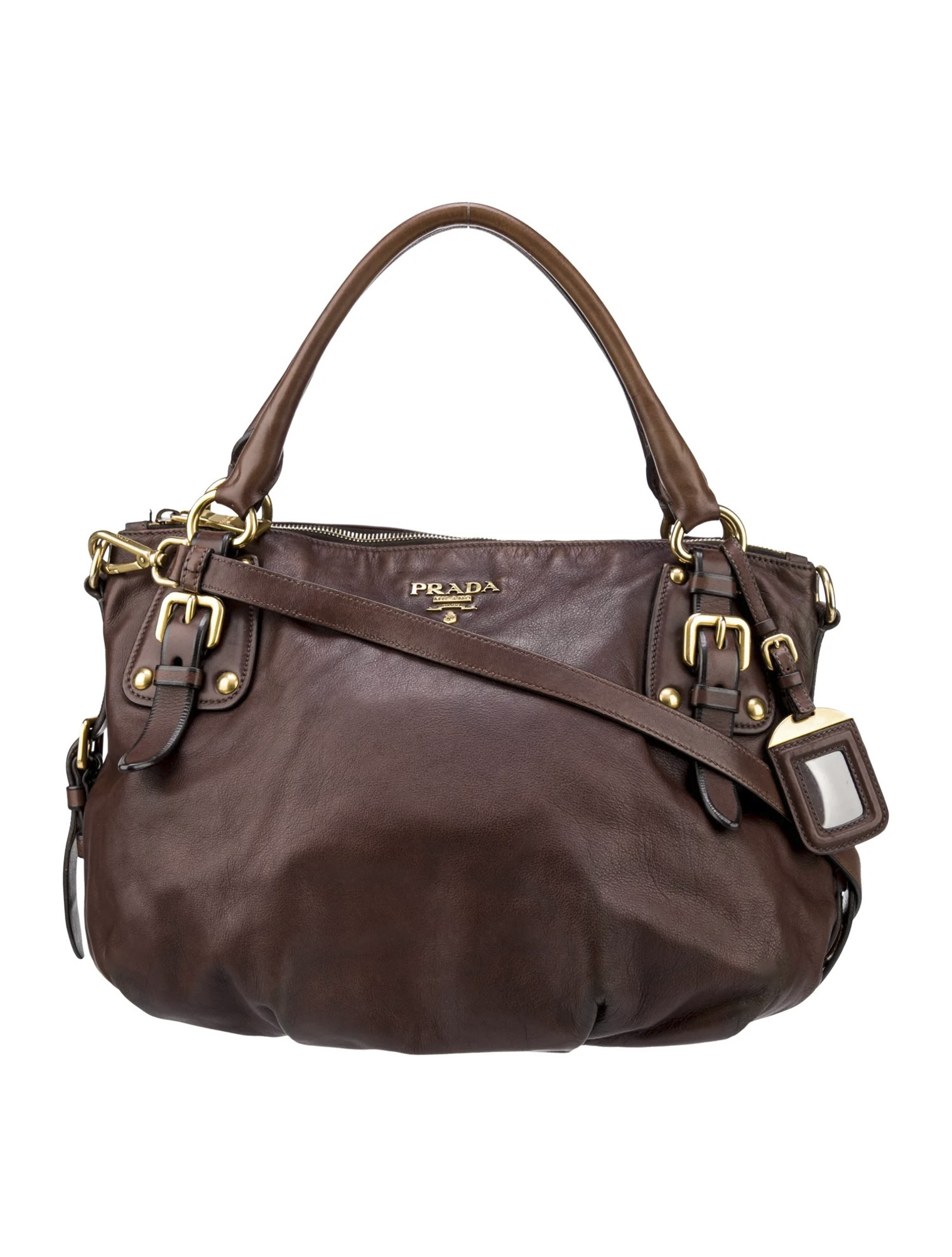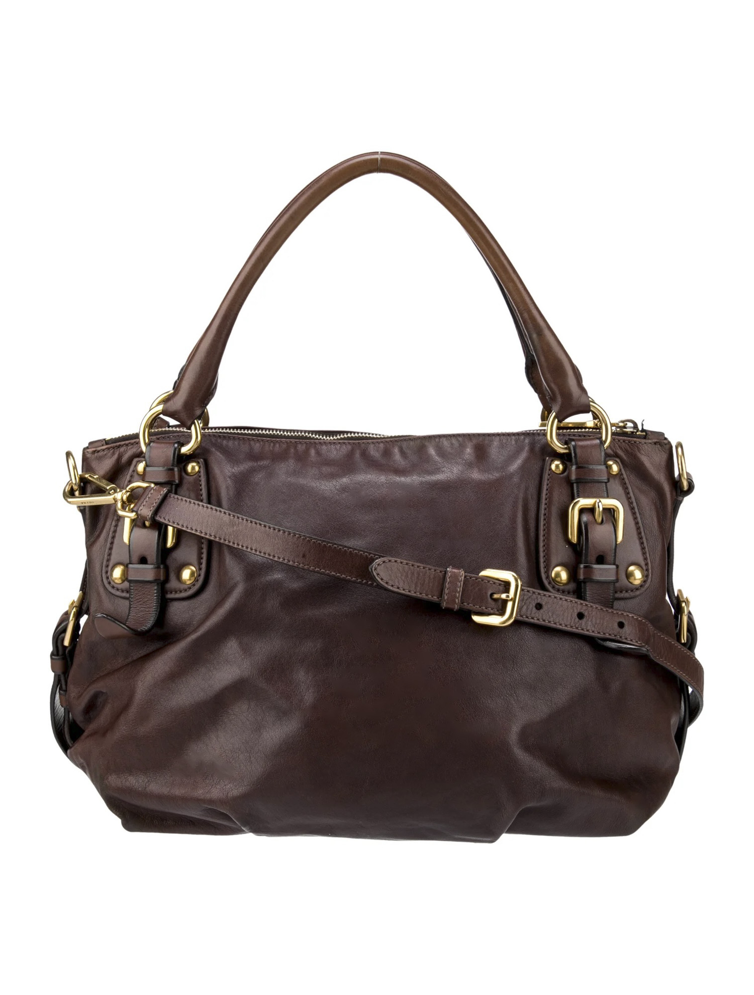 - Style: Nocciolo Brown Soft Calfskin Leather 2Way Satchel Shoulder Bag