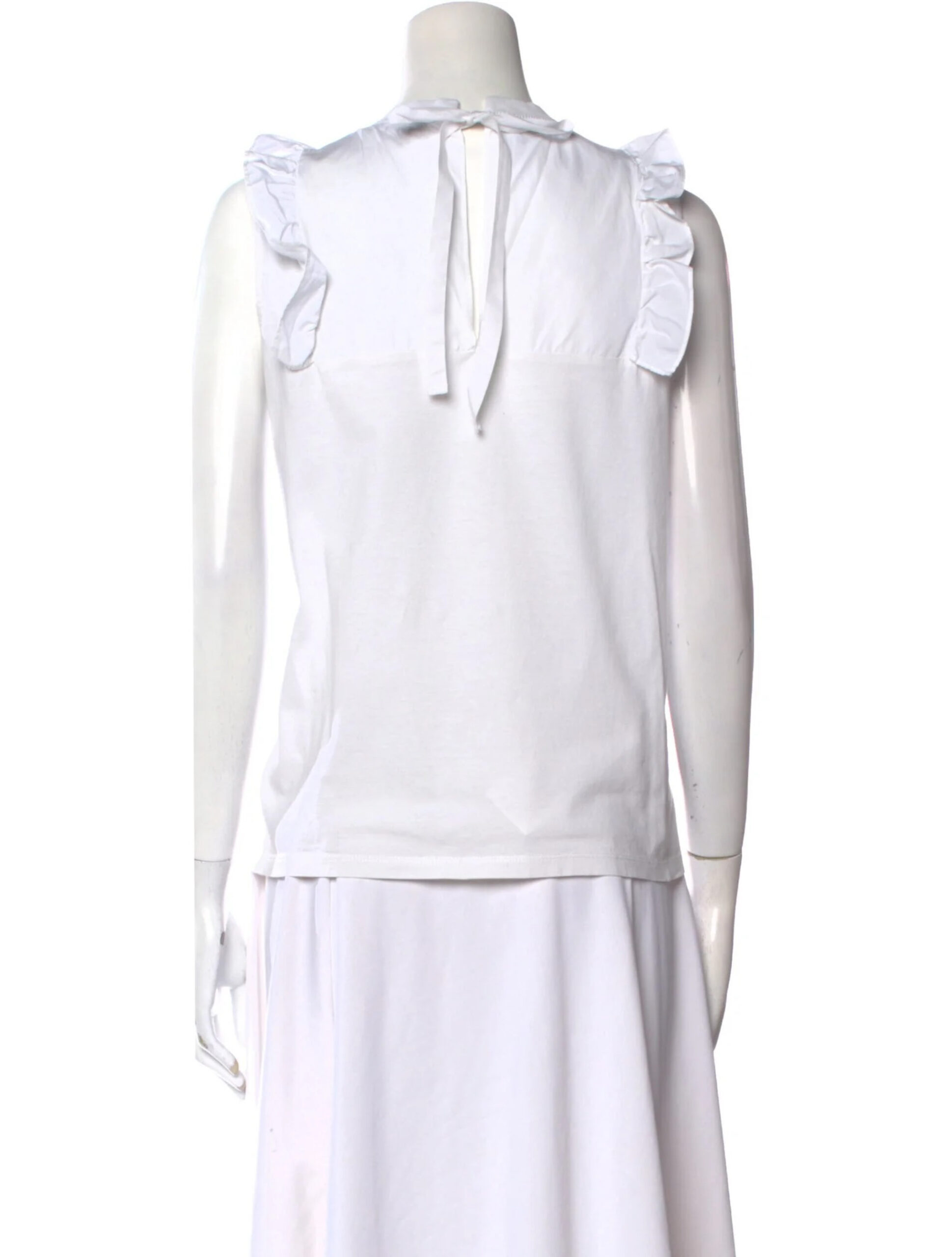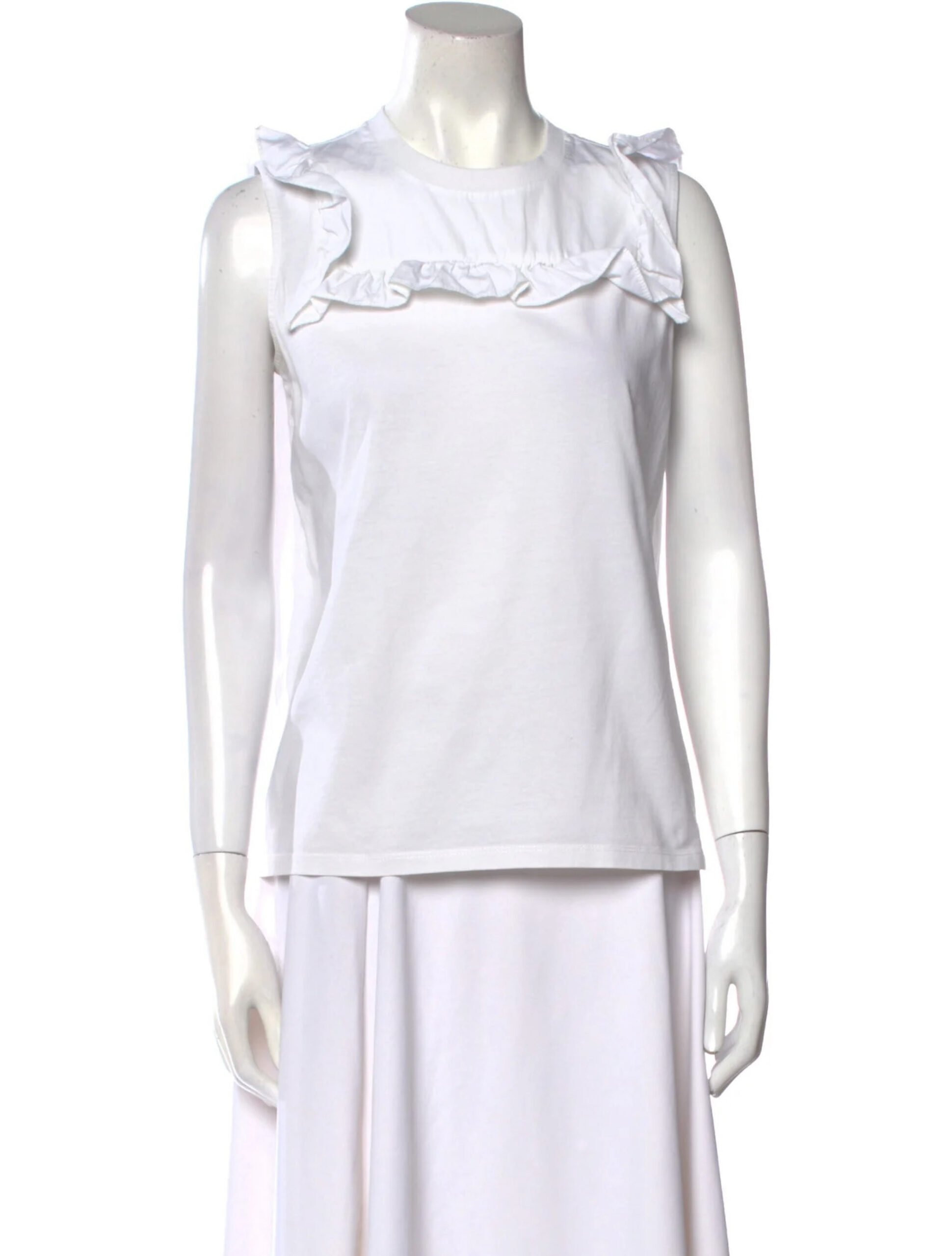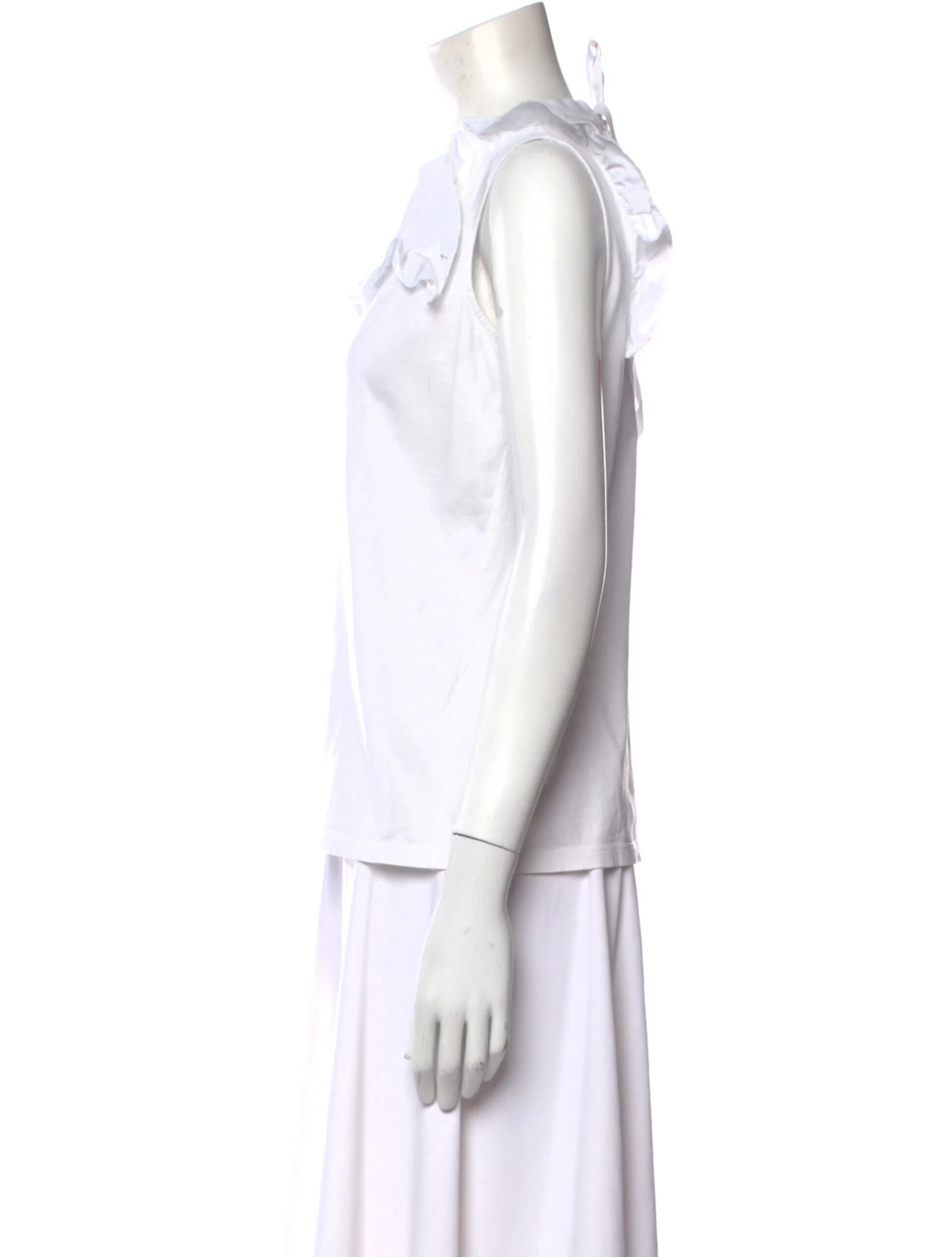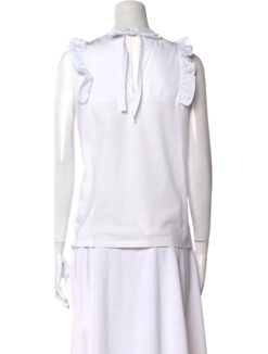 - Style: White Ruffled Sleeveless Crew Neck Top Blouse