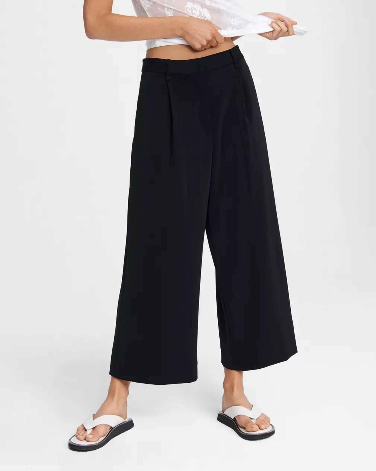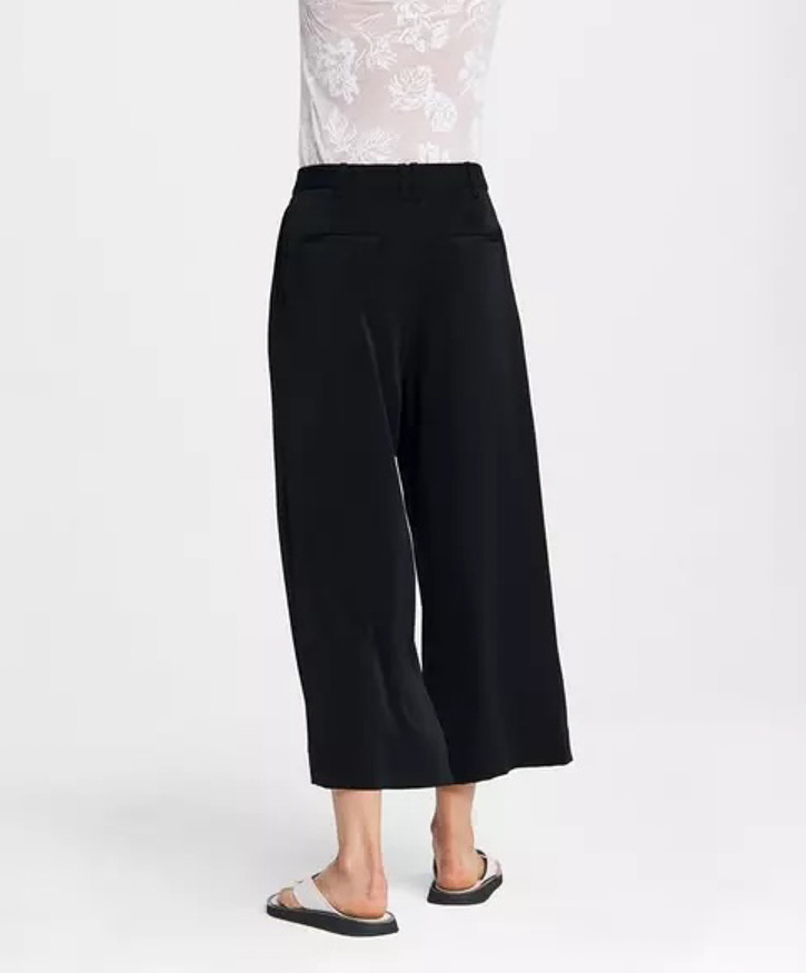 - Style: Ivy Black Crepe High Rise Wide Leg Culotte Pleated Pants