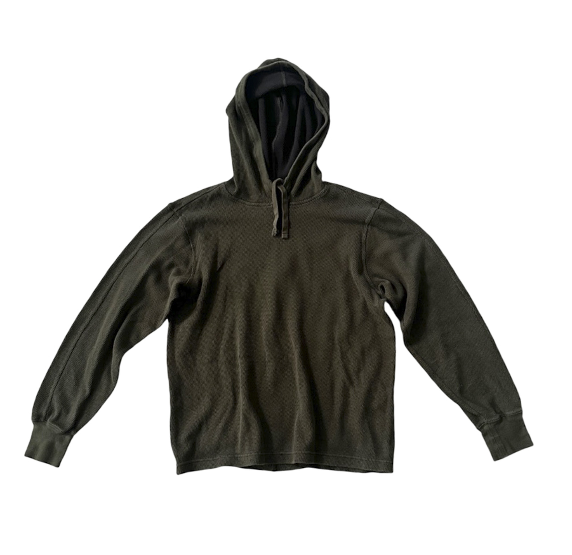 - Style: Army Green Waffle Knit Thermal Hooded Pullover Sweater