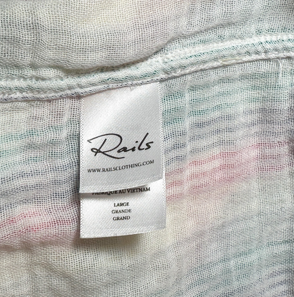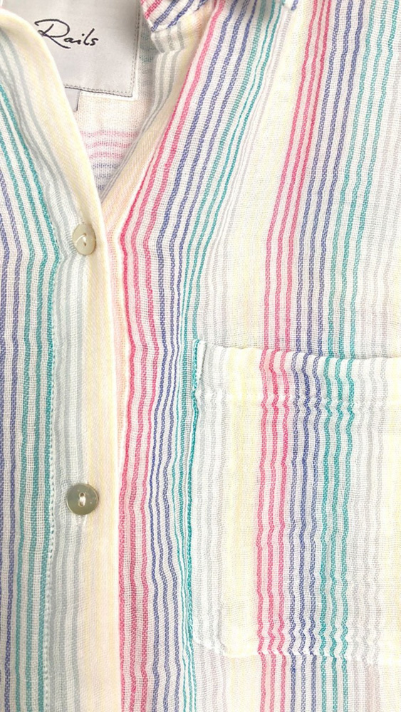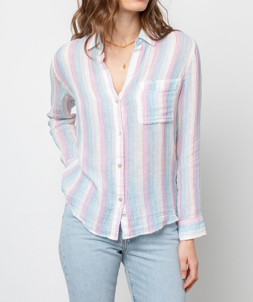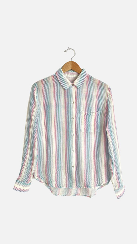 - Style: Ellis Iris Stripe Cotton Gauze Relaxed Button Up Long Sleeve Shirt