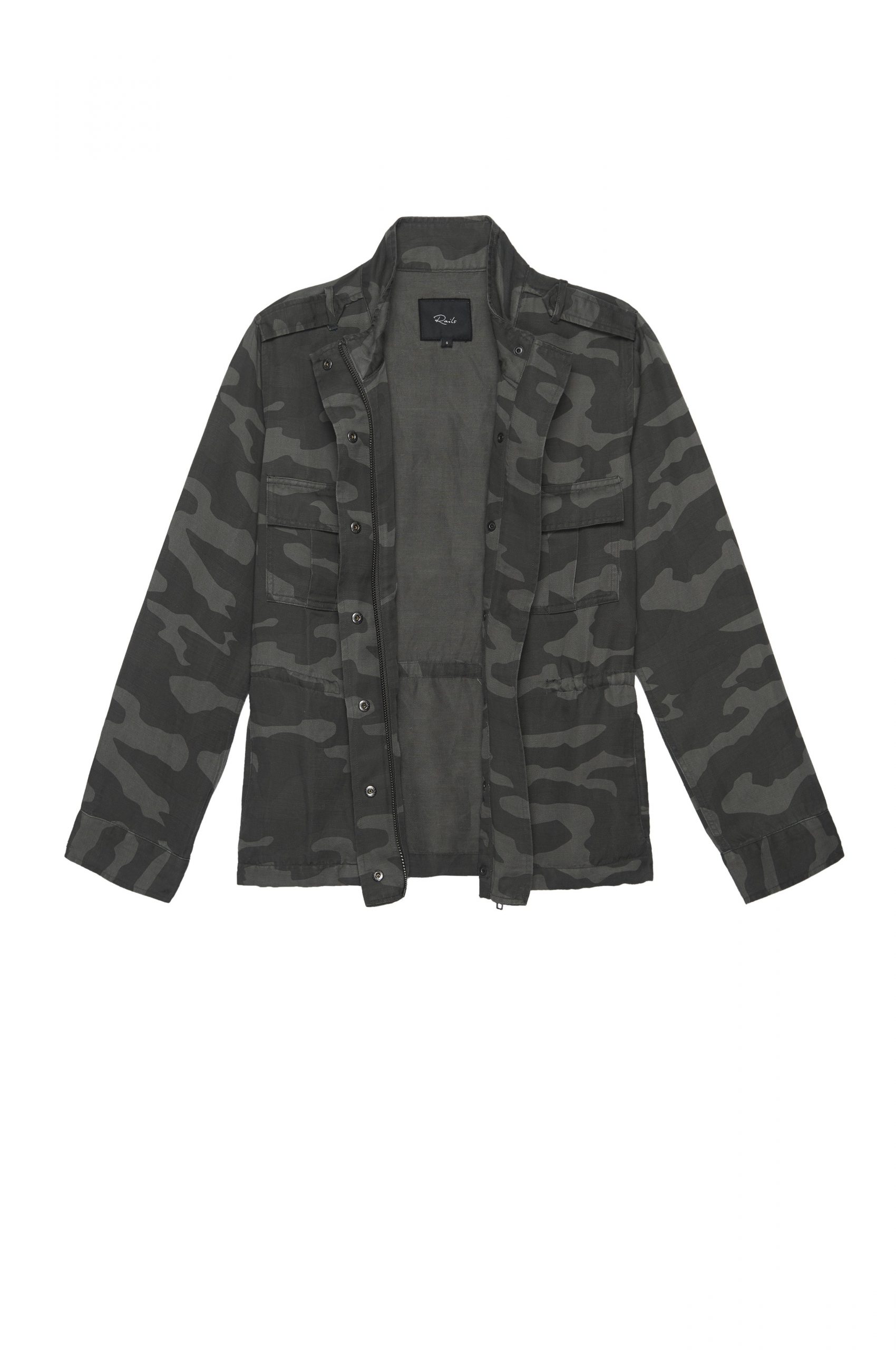 - Style: TREY CHARCOAL CAMO UTILITY JACKET