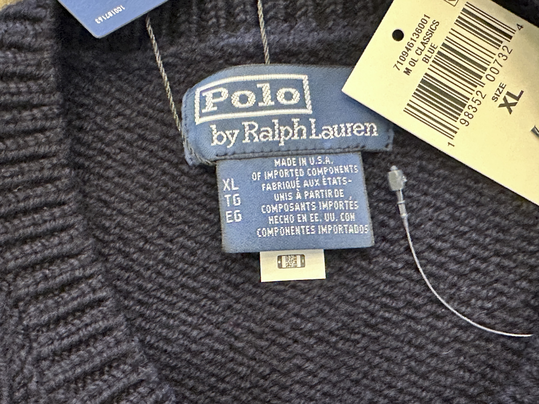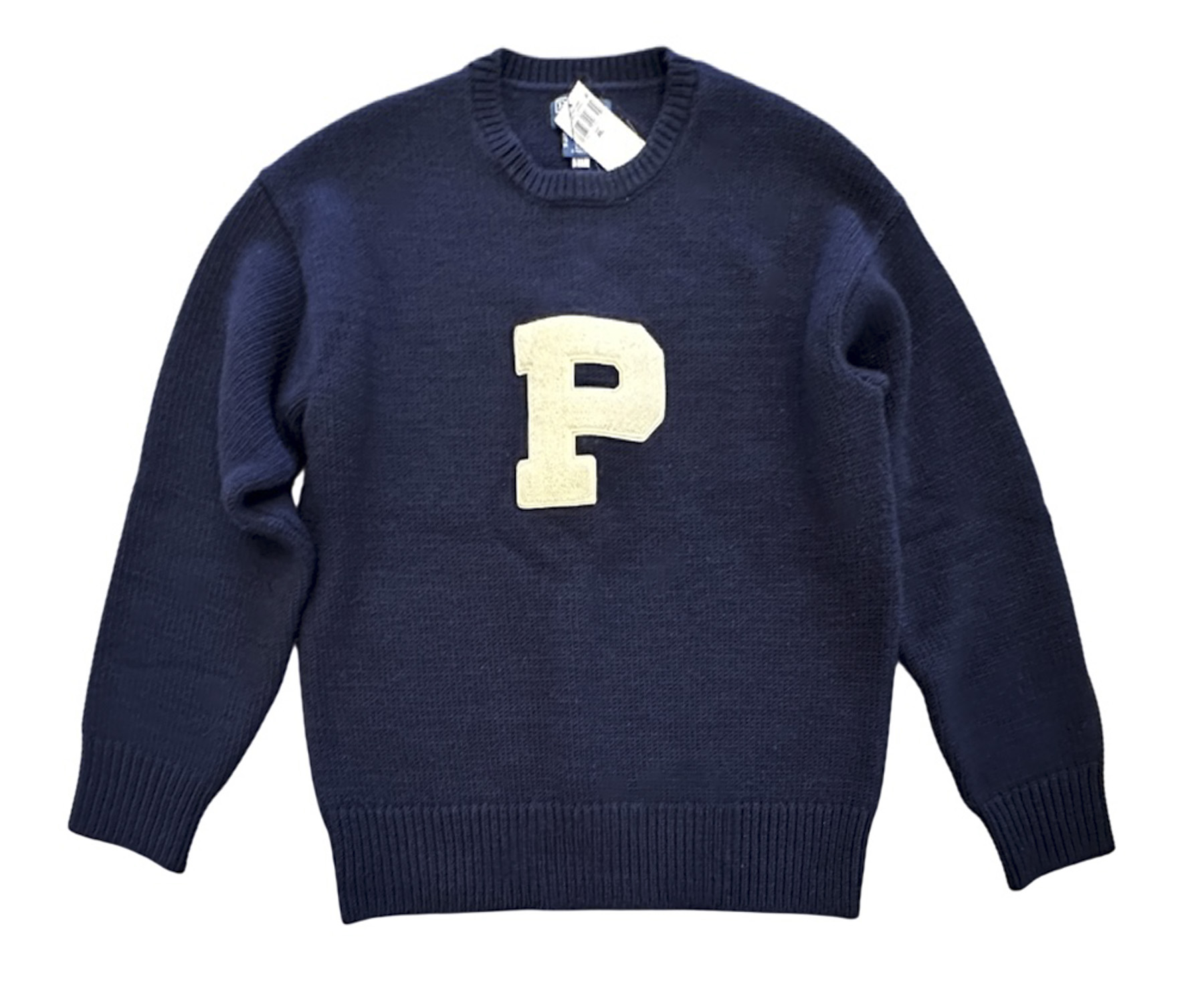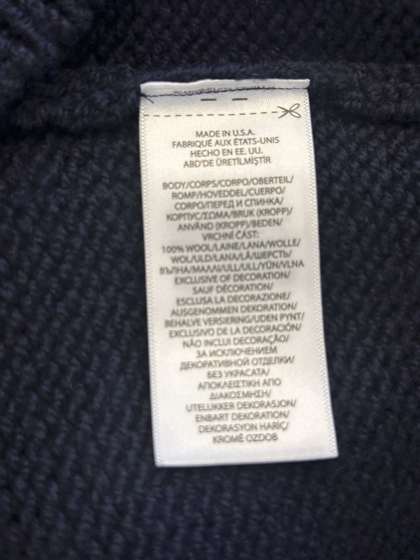 - Style: Men’s Navy Wool Chunky Knit Letterman Sweater