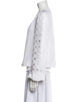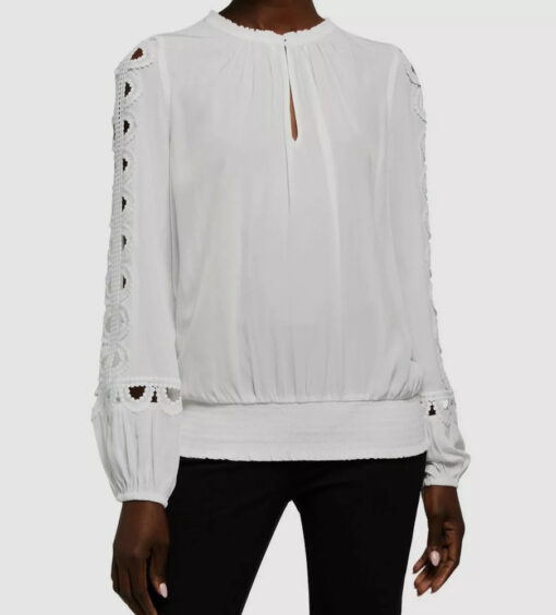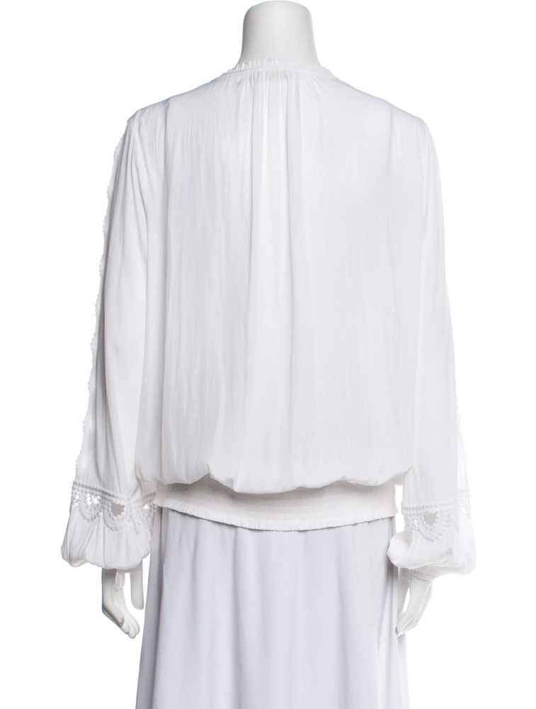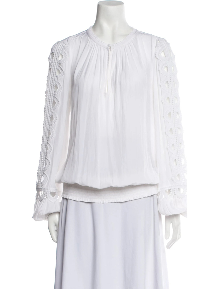 Ramy Brook Brittany Lace Long Sleeve Keyhole Neck Top Blouse XS White