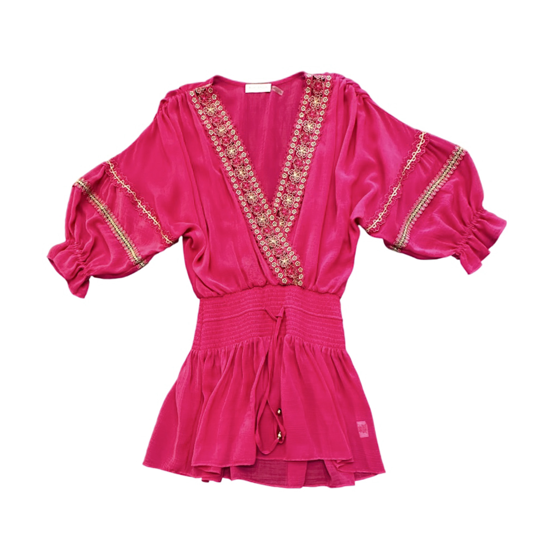 Ramy Brook Tiffany Hot Pink Smocked Cover Up Mini Dress Size XS