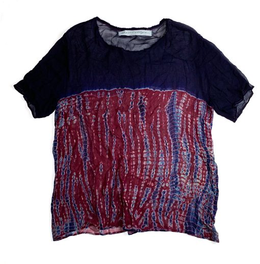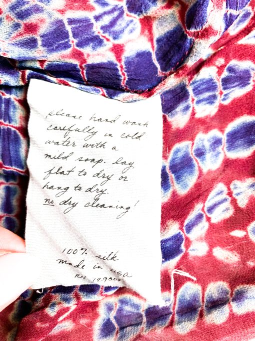 - Style: BLUE TIE DYE SHEER SILK CREW NECK TOP BLOUSE