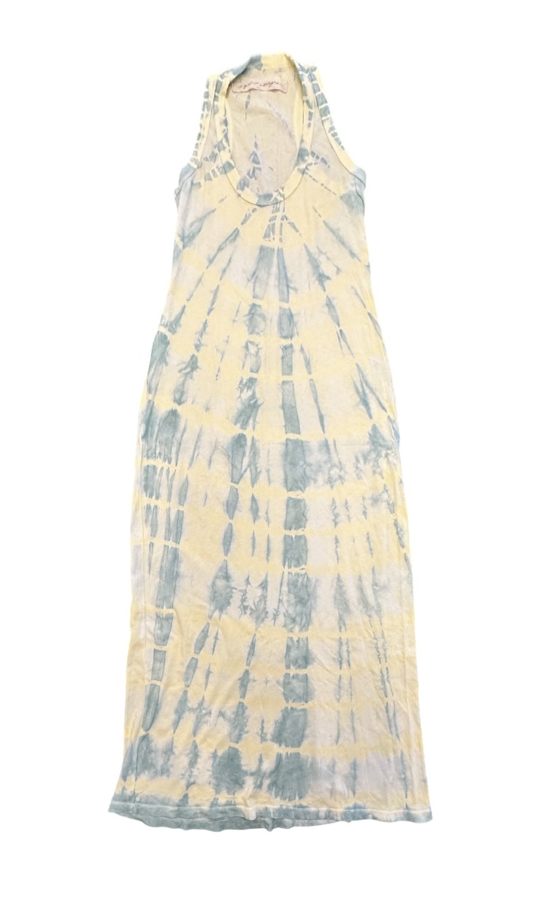 - Style: Yellow Tie Dye Racerback Scoop Neck Maxi Tank Dress