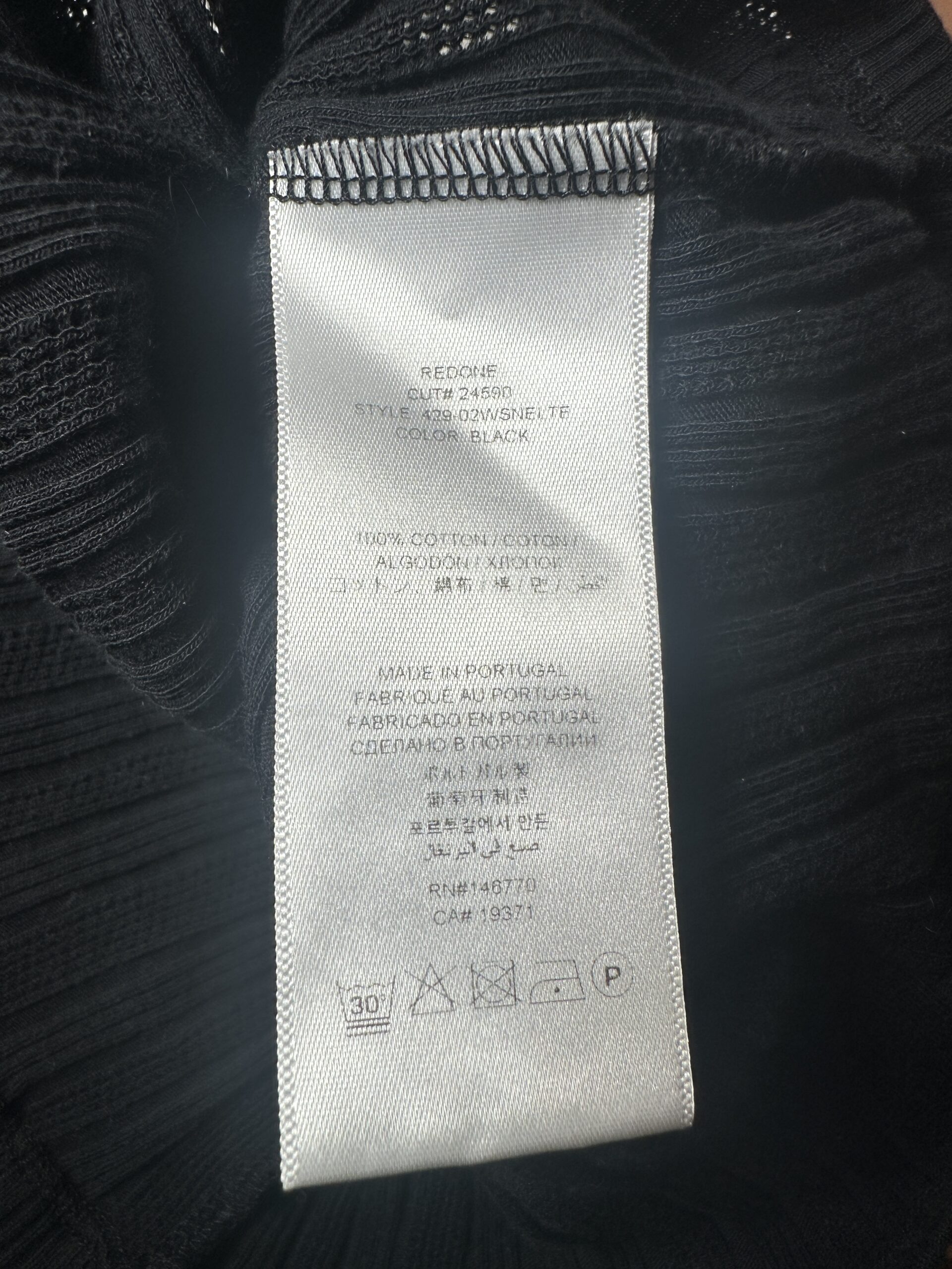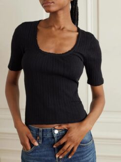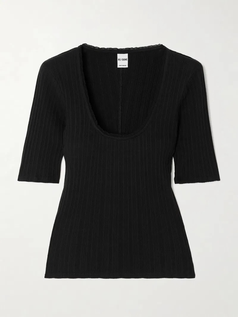 Re/Done Black Pointelle Knit Scoop Neck Short Sleeve Top Blouse Size XS