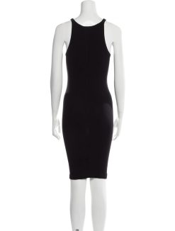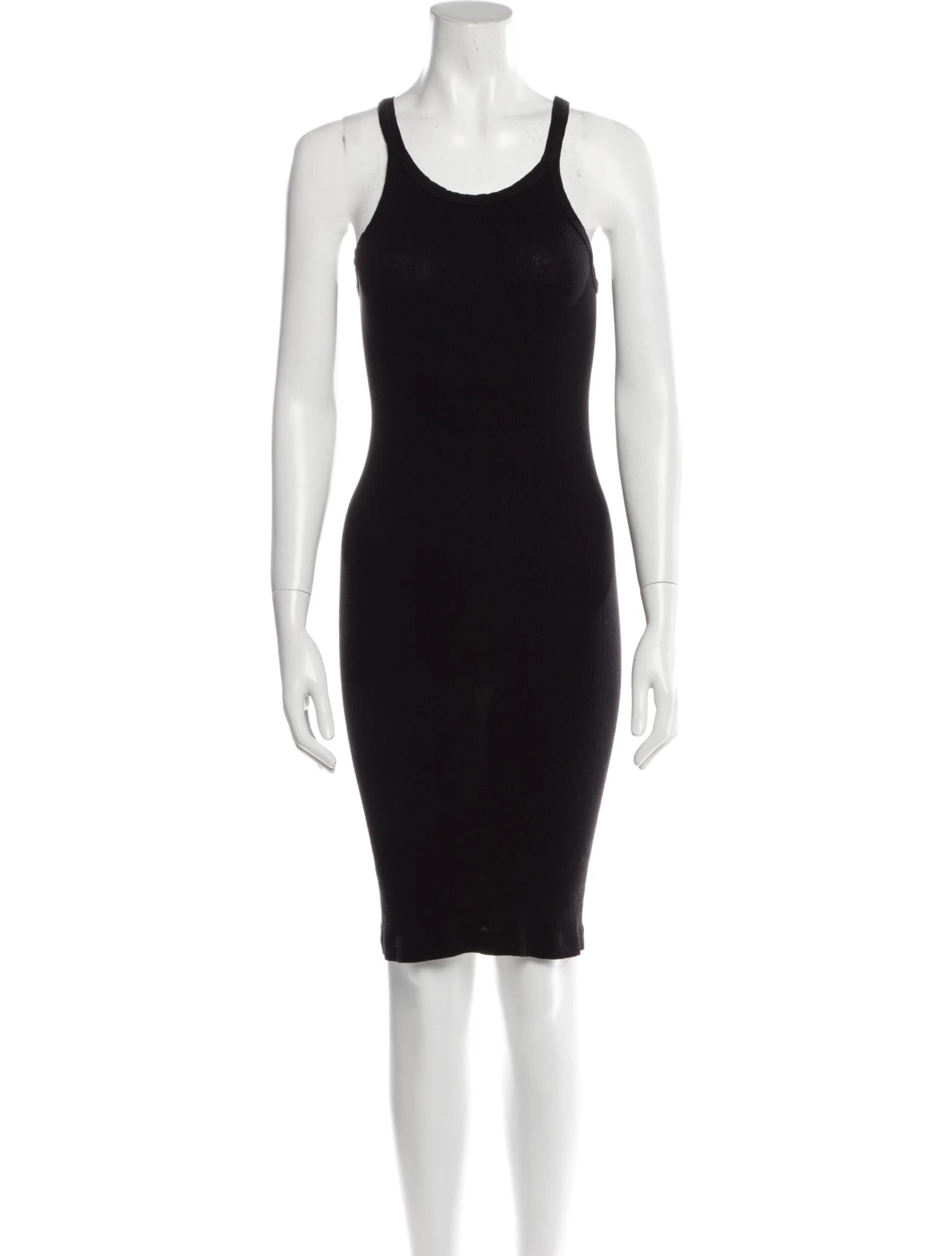 - Style: BLACK RIBBED COTTON SCOOP NECK SHEATH DRESS