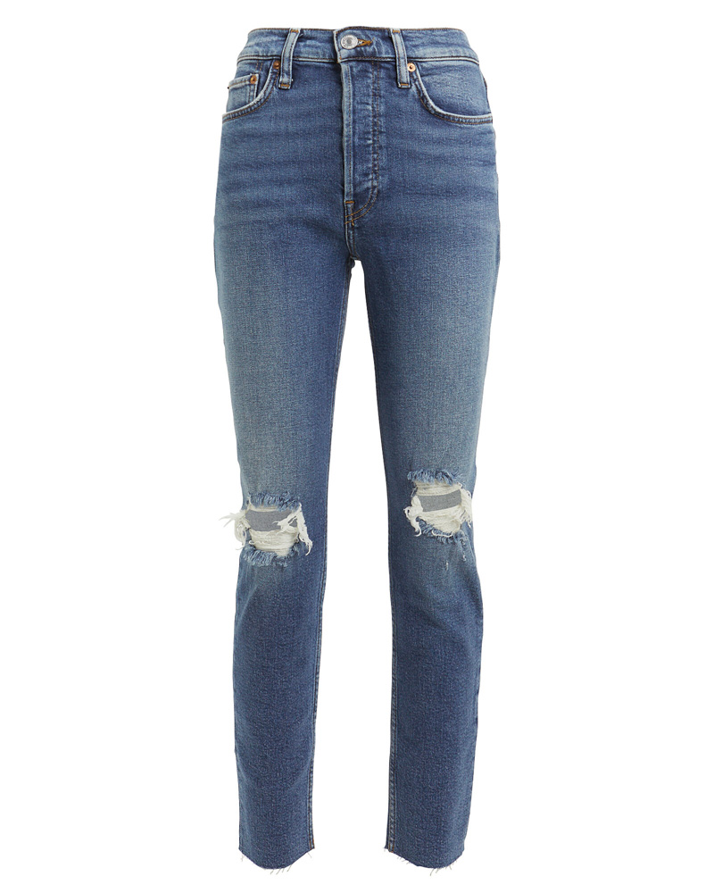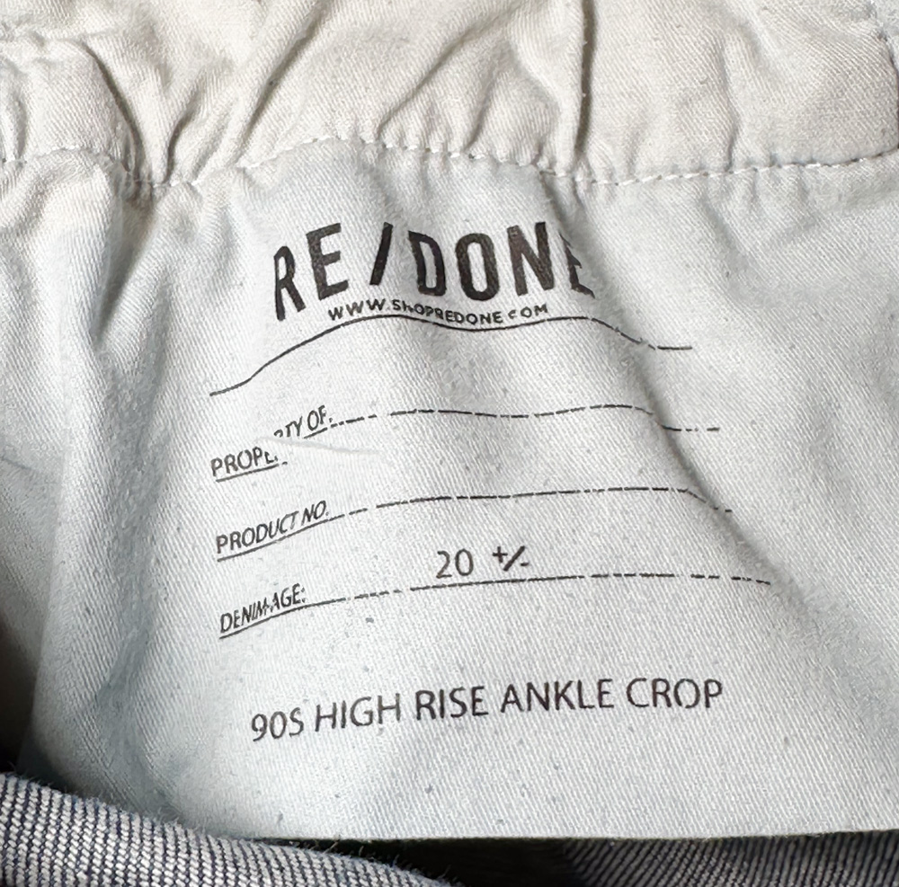 RE/DONE Originals 90’s High Rise Ankle Crop Stretch Jeans Dusk Destroy Size 25