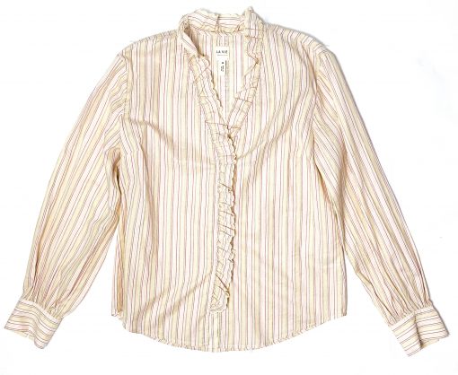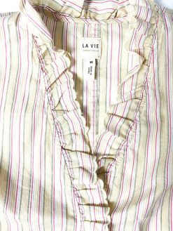 - Style: STRIPED COTTON RUFFLE TRIM TOP BLOUSE