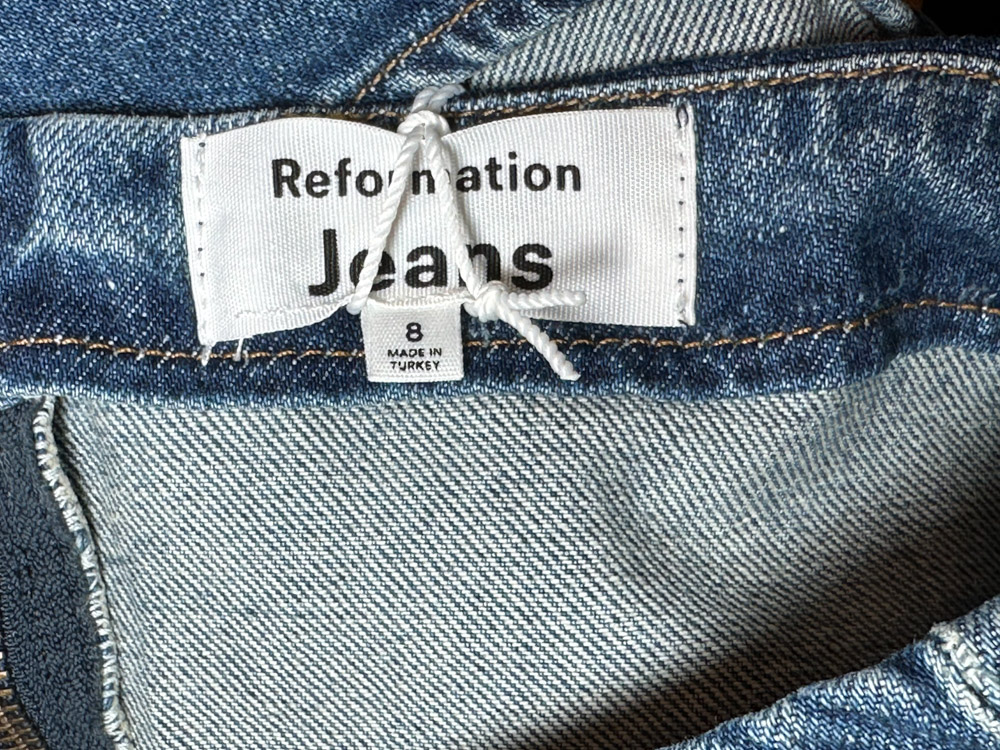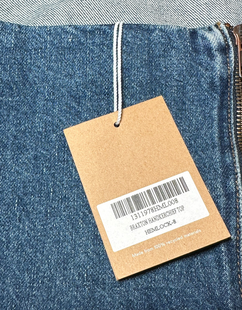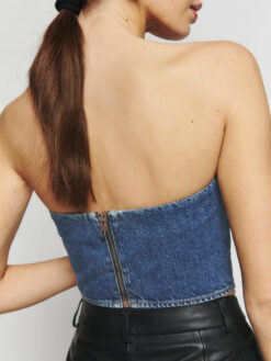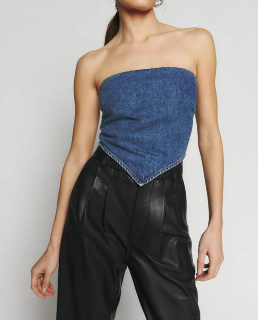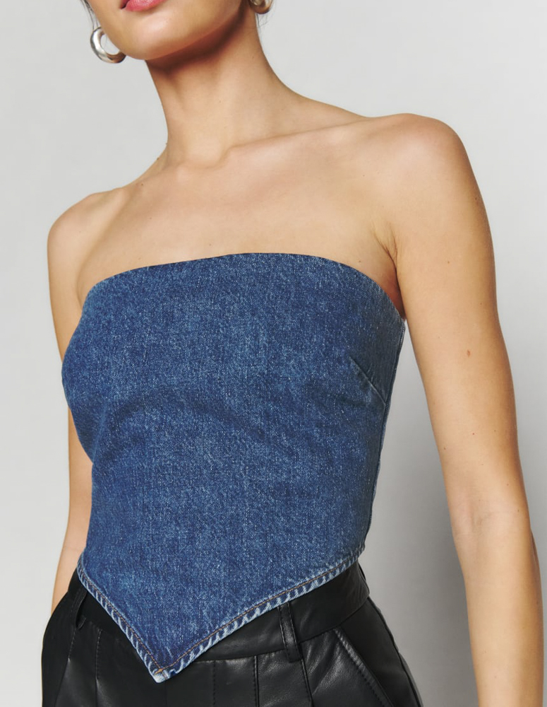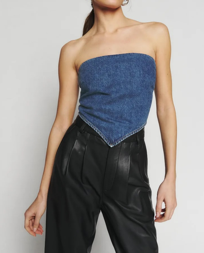 Reformation NWT Braxton Blue Denim Strapless Handkerchief Top Blouse 8 NEW