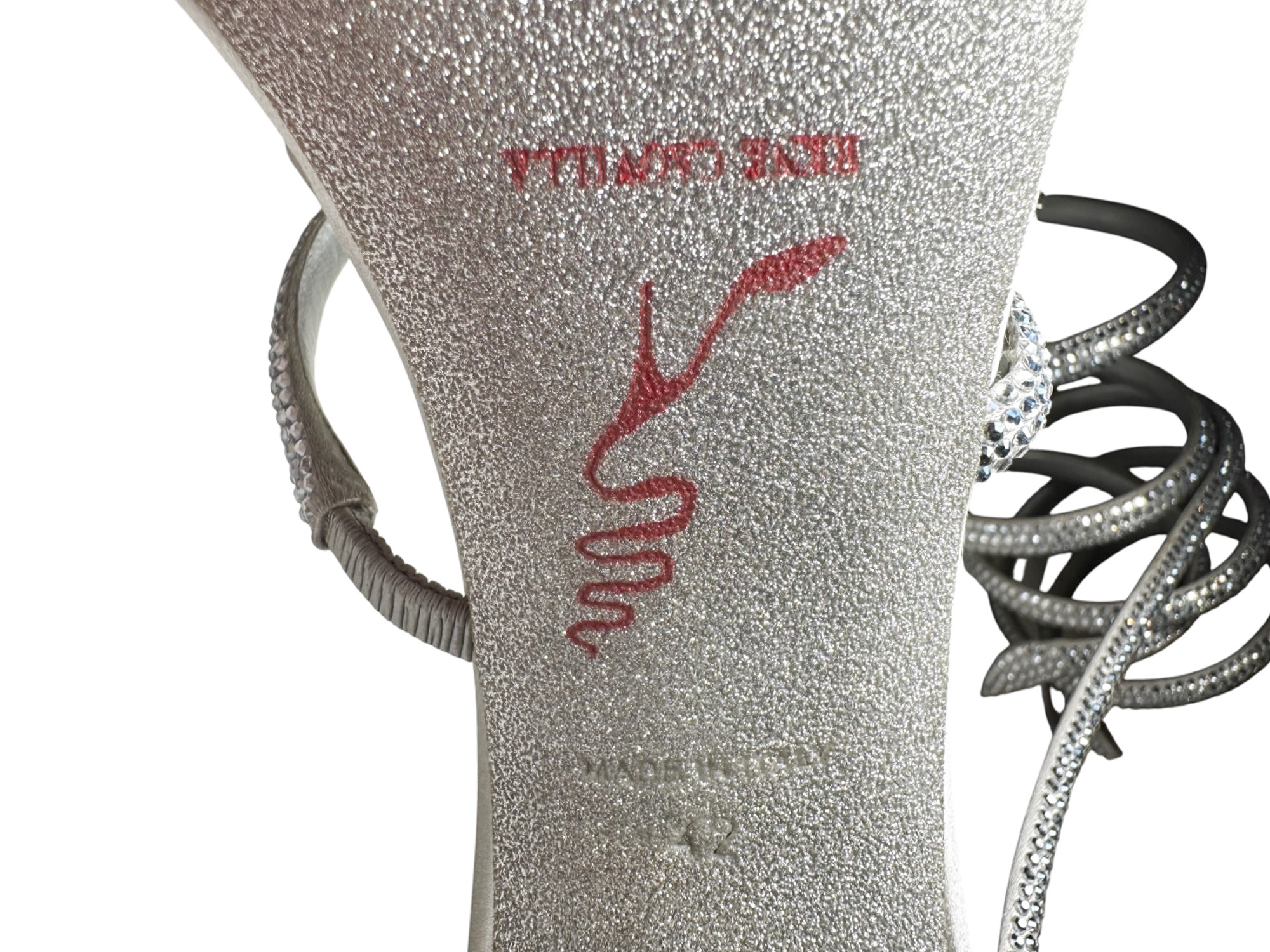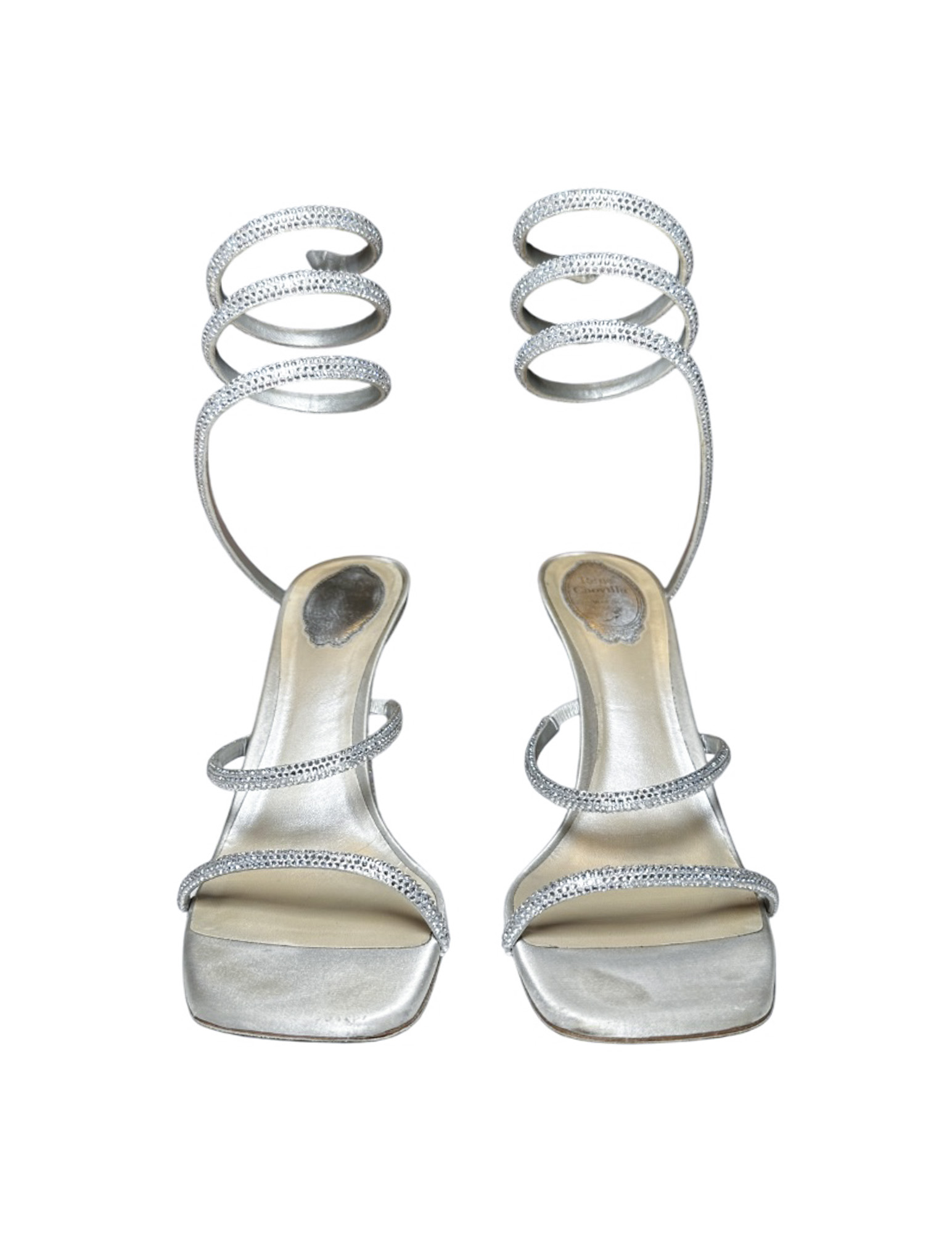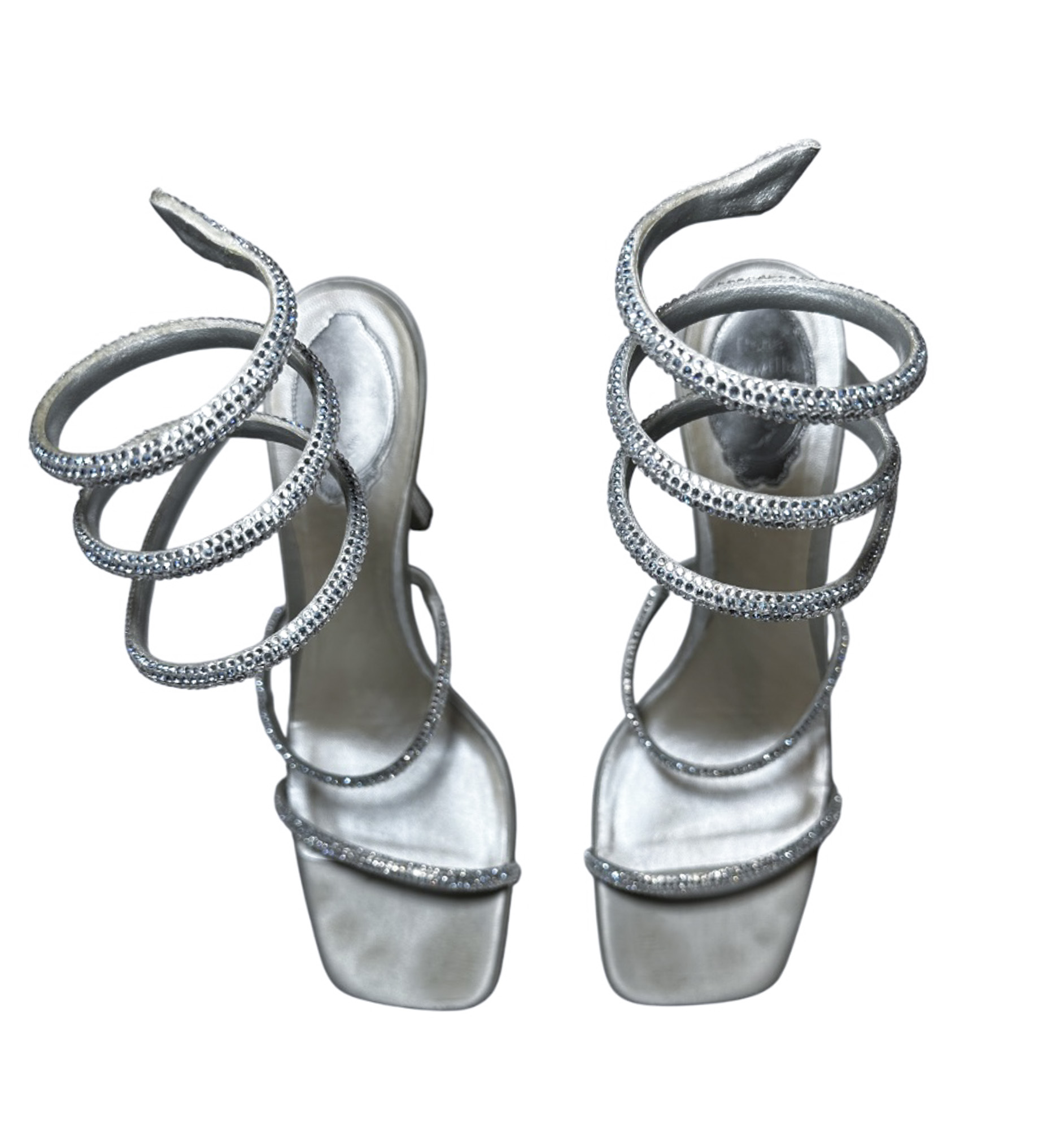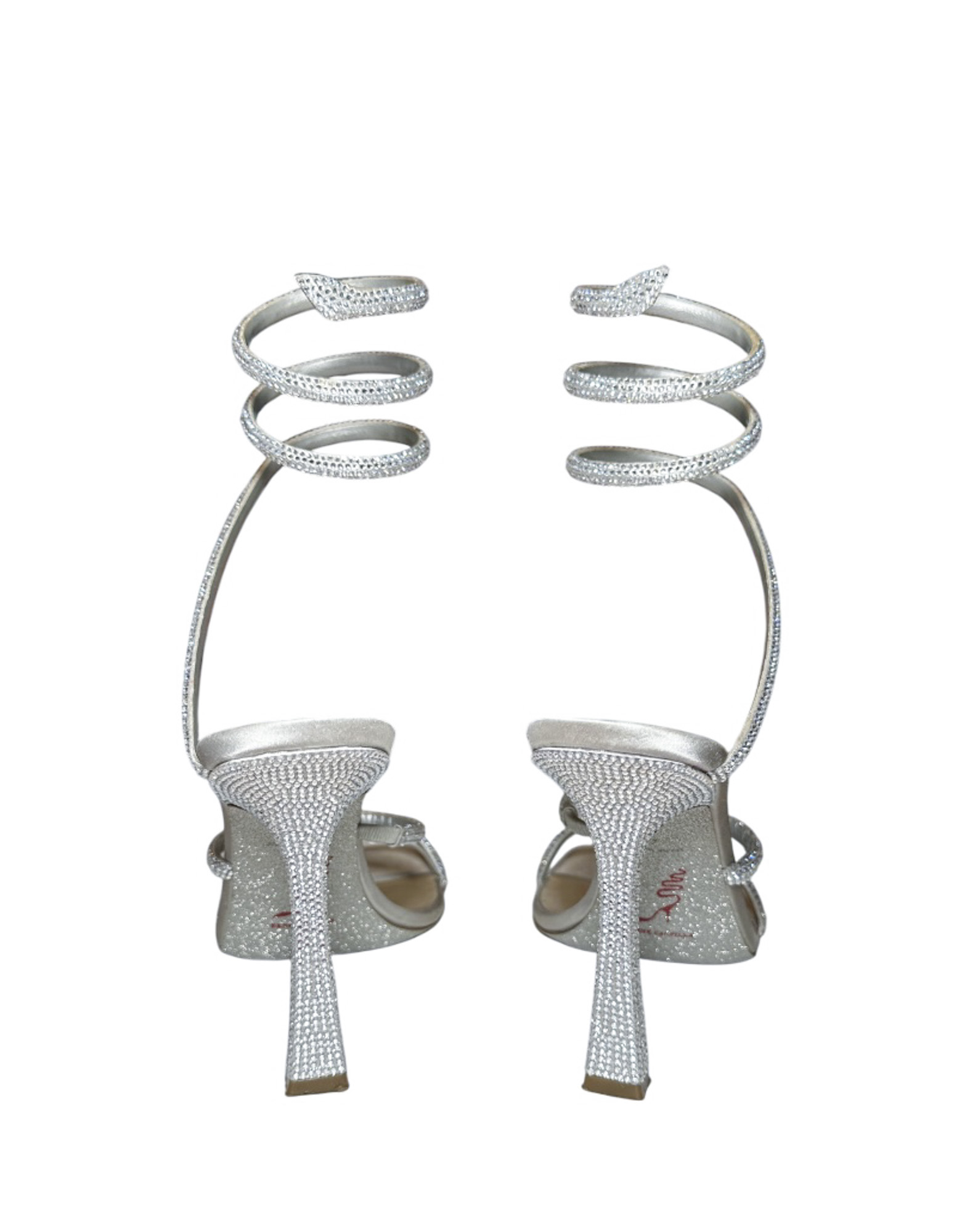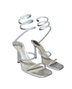 - Style: Cleo Silver Crystal Strass Serpent Wrap Heels Sandals
