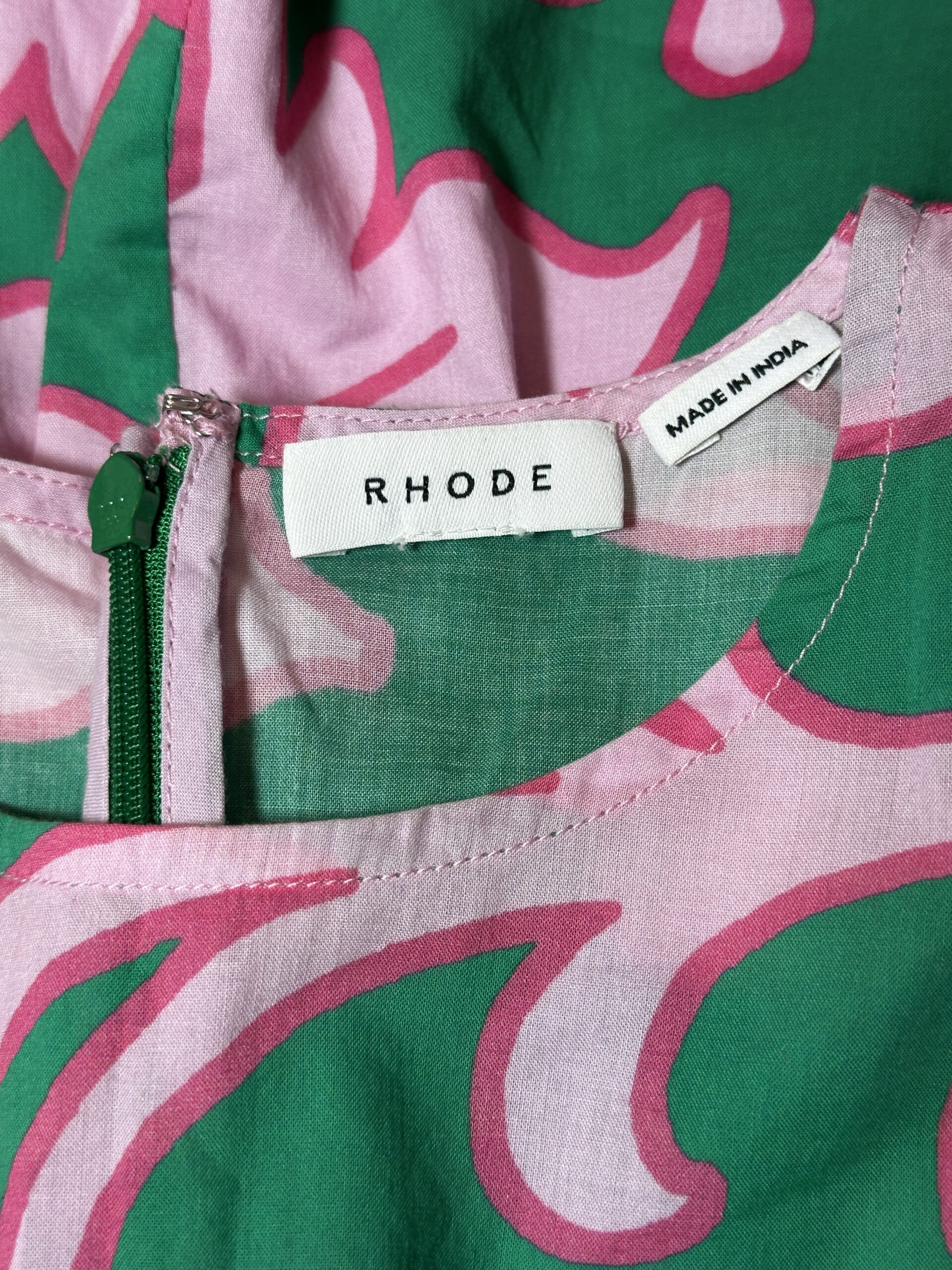 Rhode Pia Floral Puff Sleeve Mini Dress Size Small Green Pink