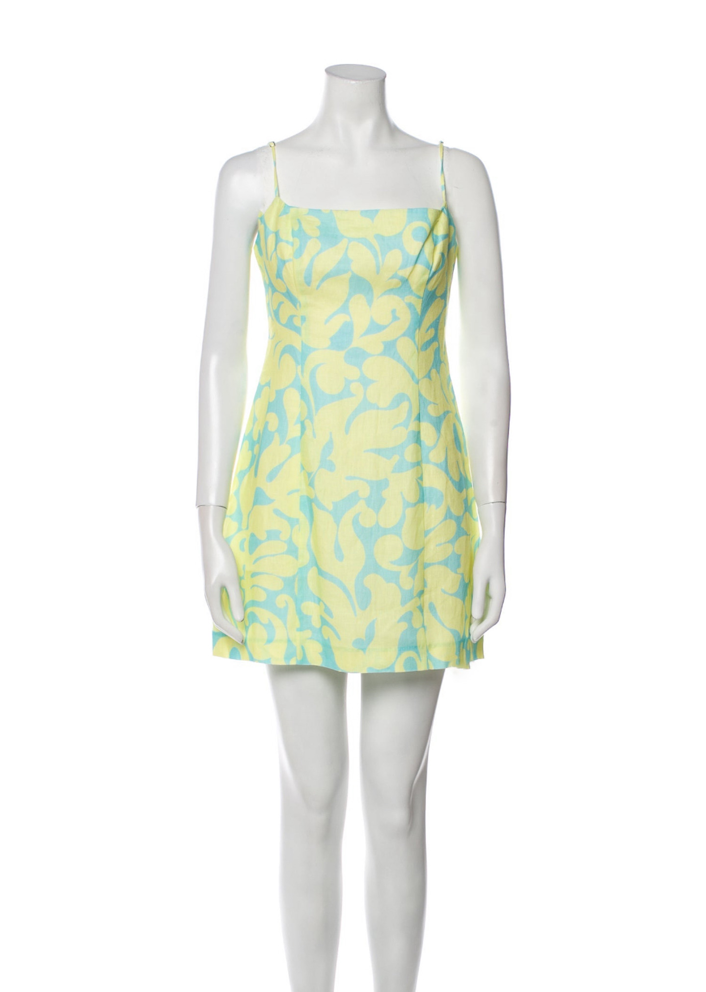 Rhode Resort Jackie Sleeveless Linen Mini Dress Size 4 Yellow Blue