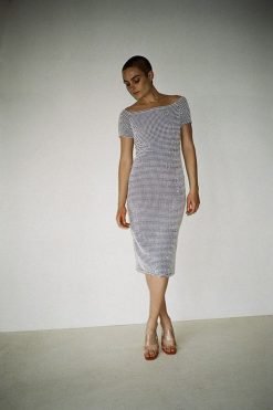 - Style: SARA GINGHAM EMBOSSED MIDI DRESS