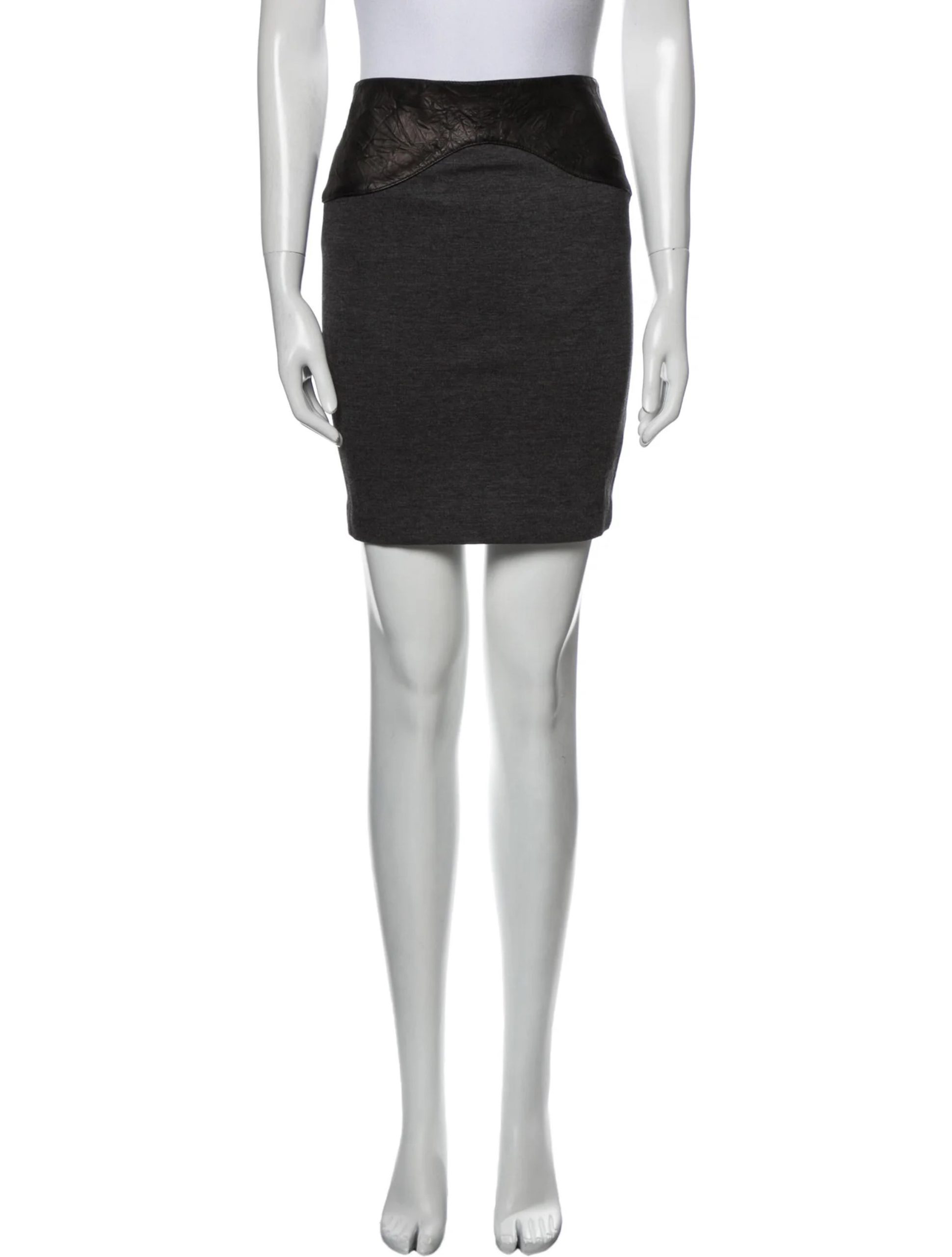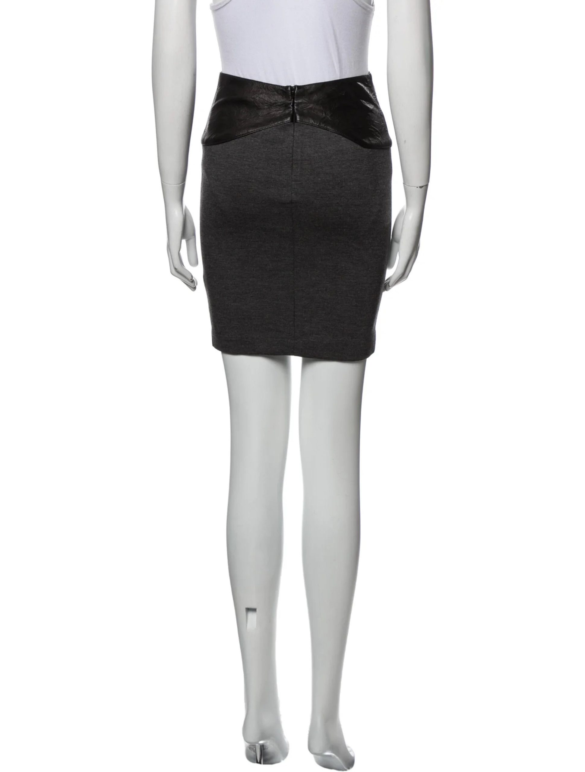 - Style: GRAY LAMBSKIN LEATHER TRIM MINI SKIRT