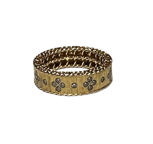 - Style: Princess 18K Yellow Gold Fleur De Lis Diamond Satin Ring