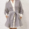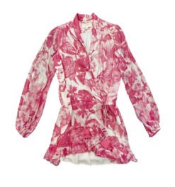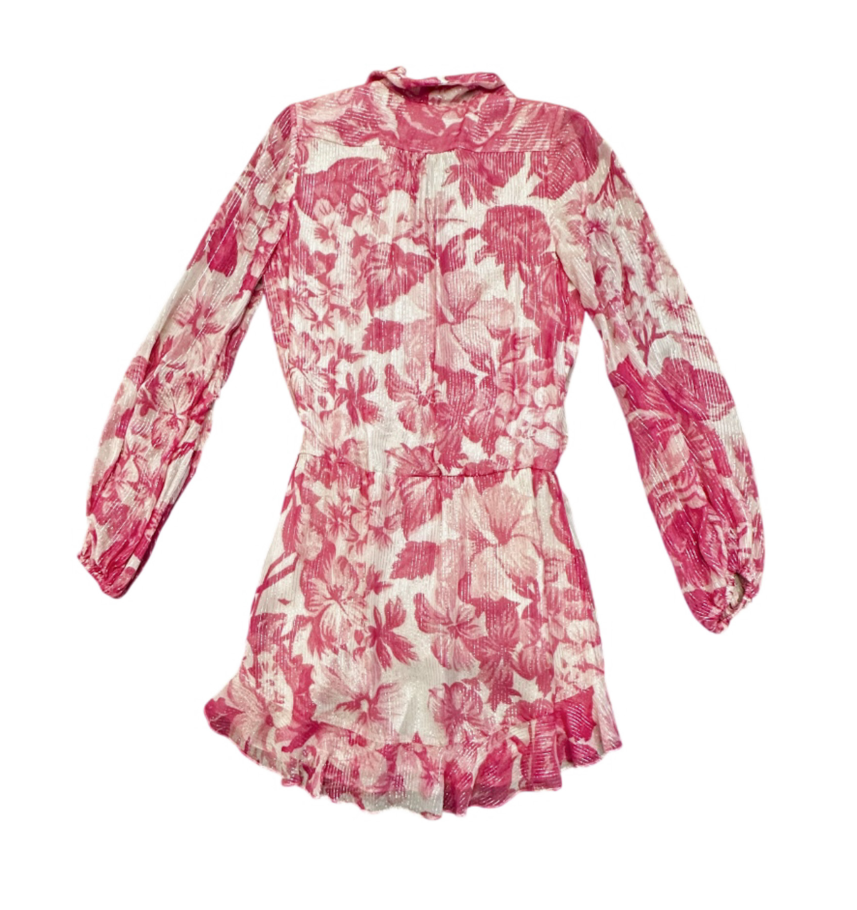 - Style: Cerise Pink Floral V-Neck Long Sleeve Boho Mini Dress