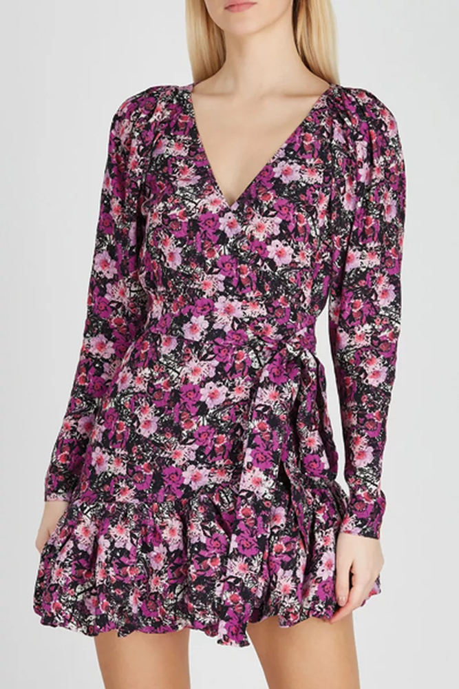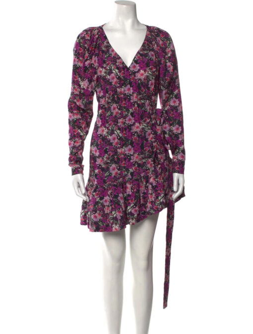 Rotate Birger Christensen Nancy Floral Lurex V-Neck Mini Wrap Dress Size 6