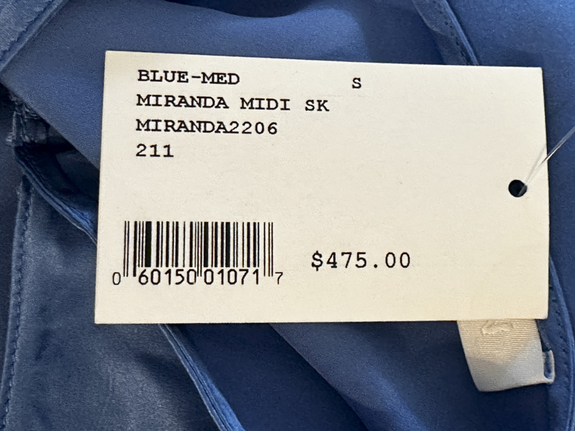 Sablyn NWT Miranda Blue Silk Satin Midi Skirt Size Small NEW TAGS