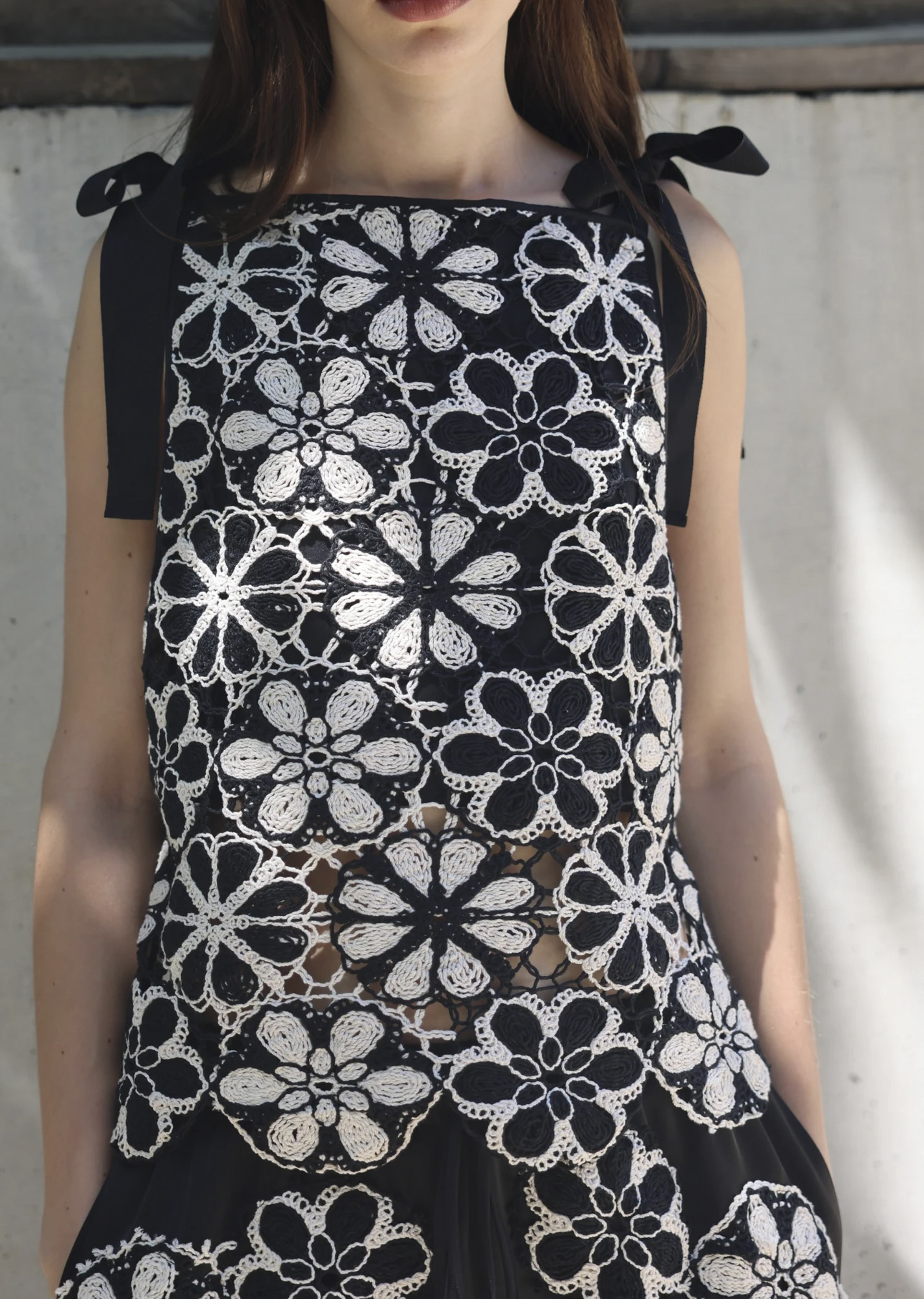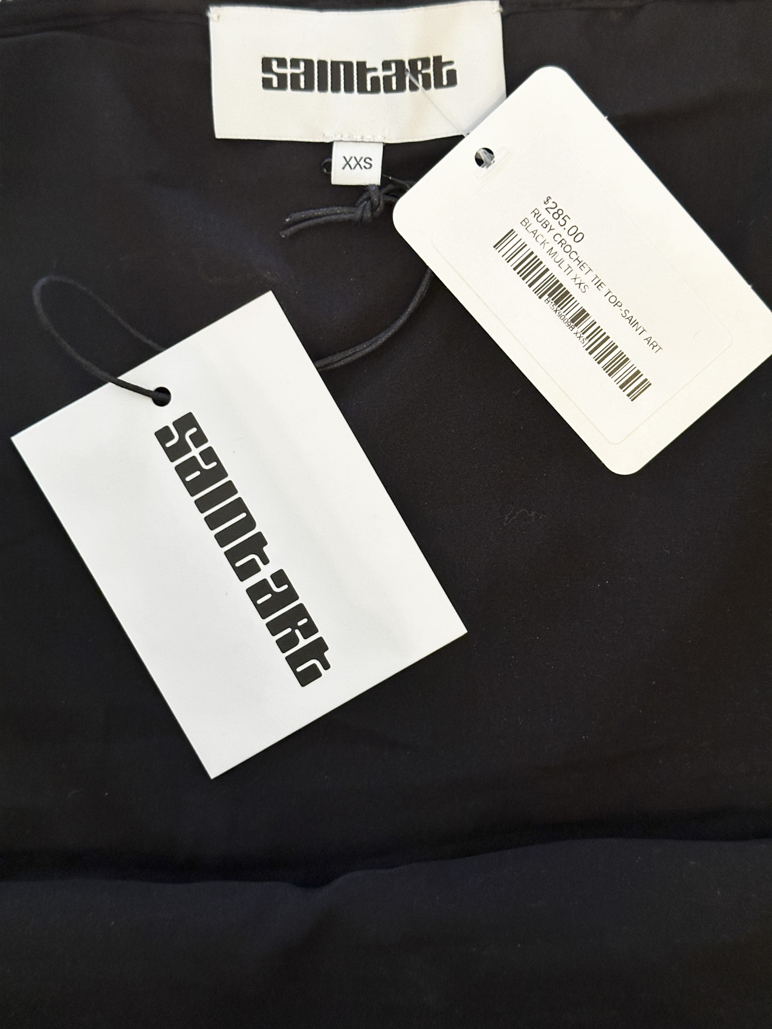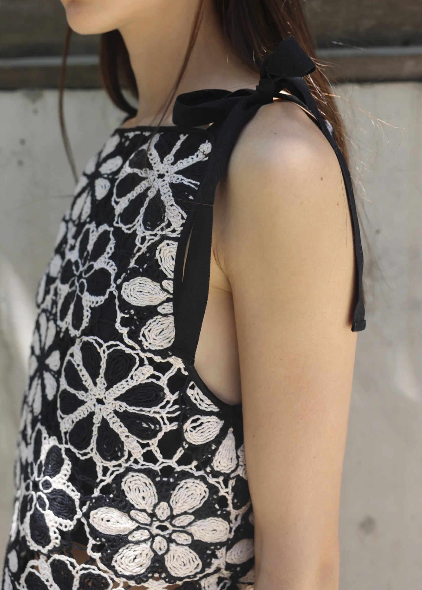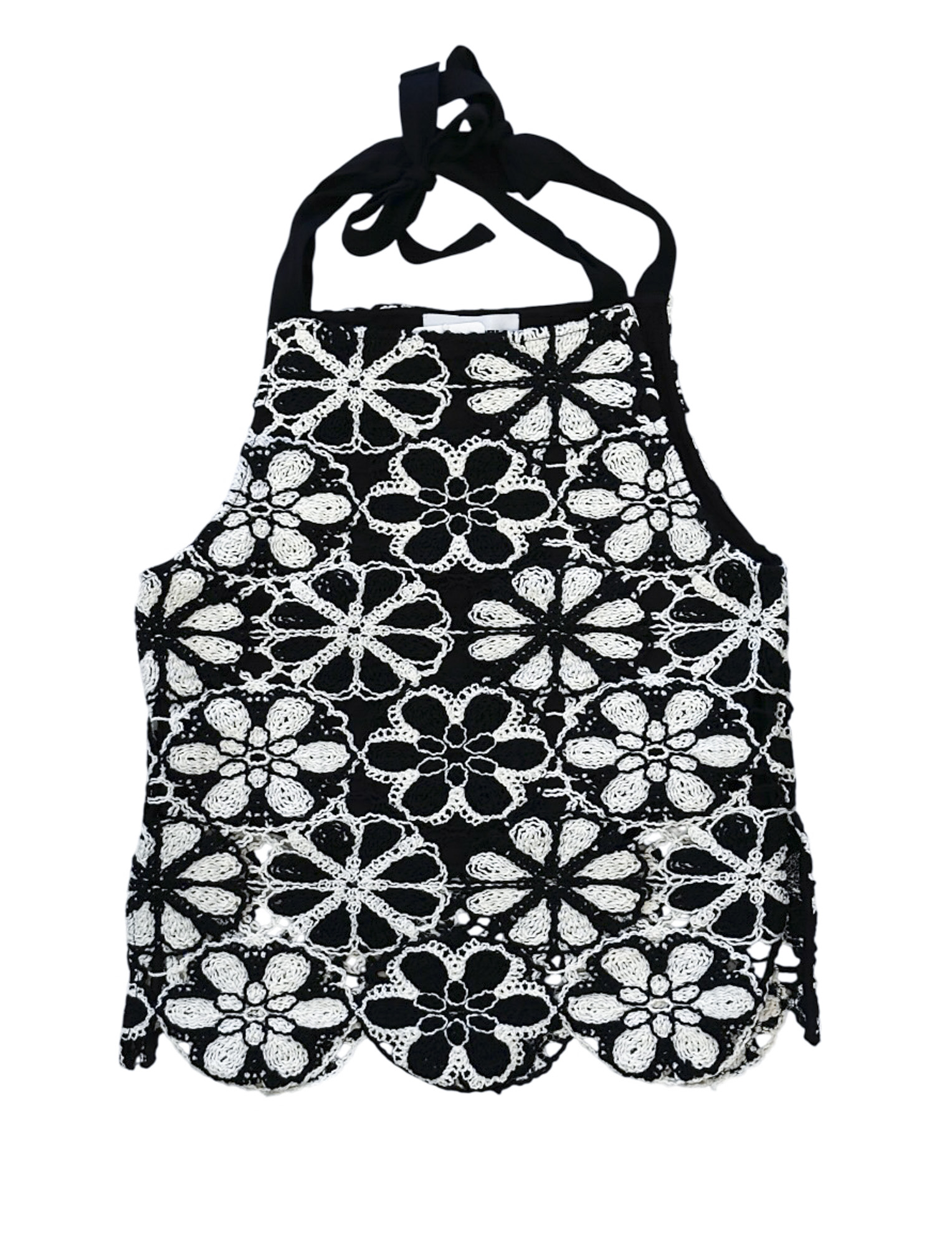 - Style: Ruby Black Crochet Knit Tie Top Blouse