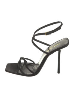 - Style: Nuit 105 Black Satin Ankle Strap Heels Sandals Pumps