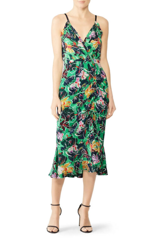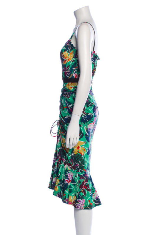 Saloni Womens Jennie Floral Silk Sleeveless V-Neck Midi Dress Size 2