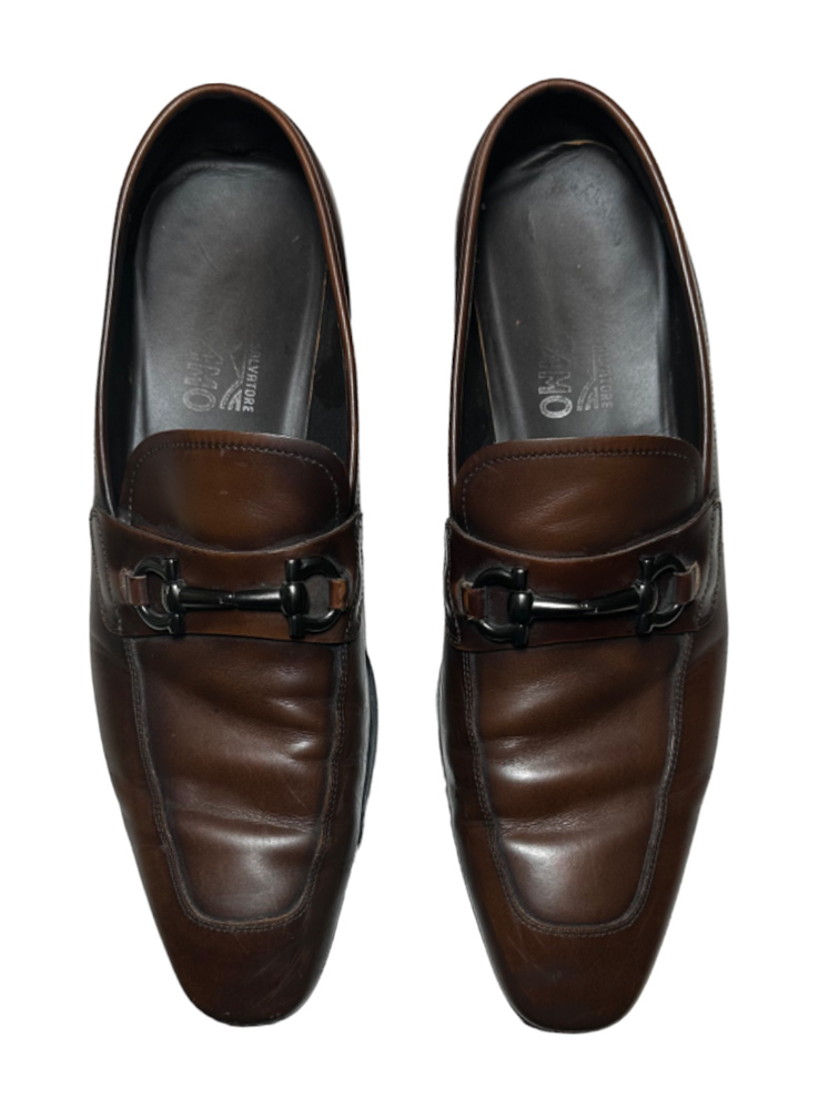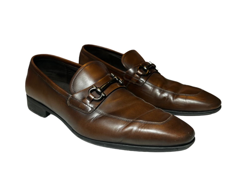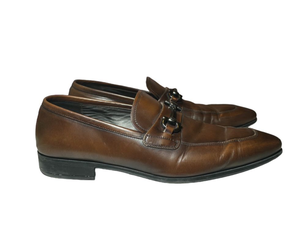 - Style: Dinamo Brown Leather Gancini Loafers Dress Shoes