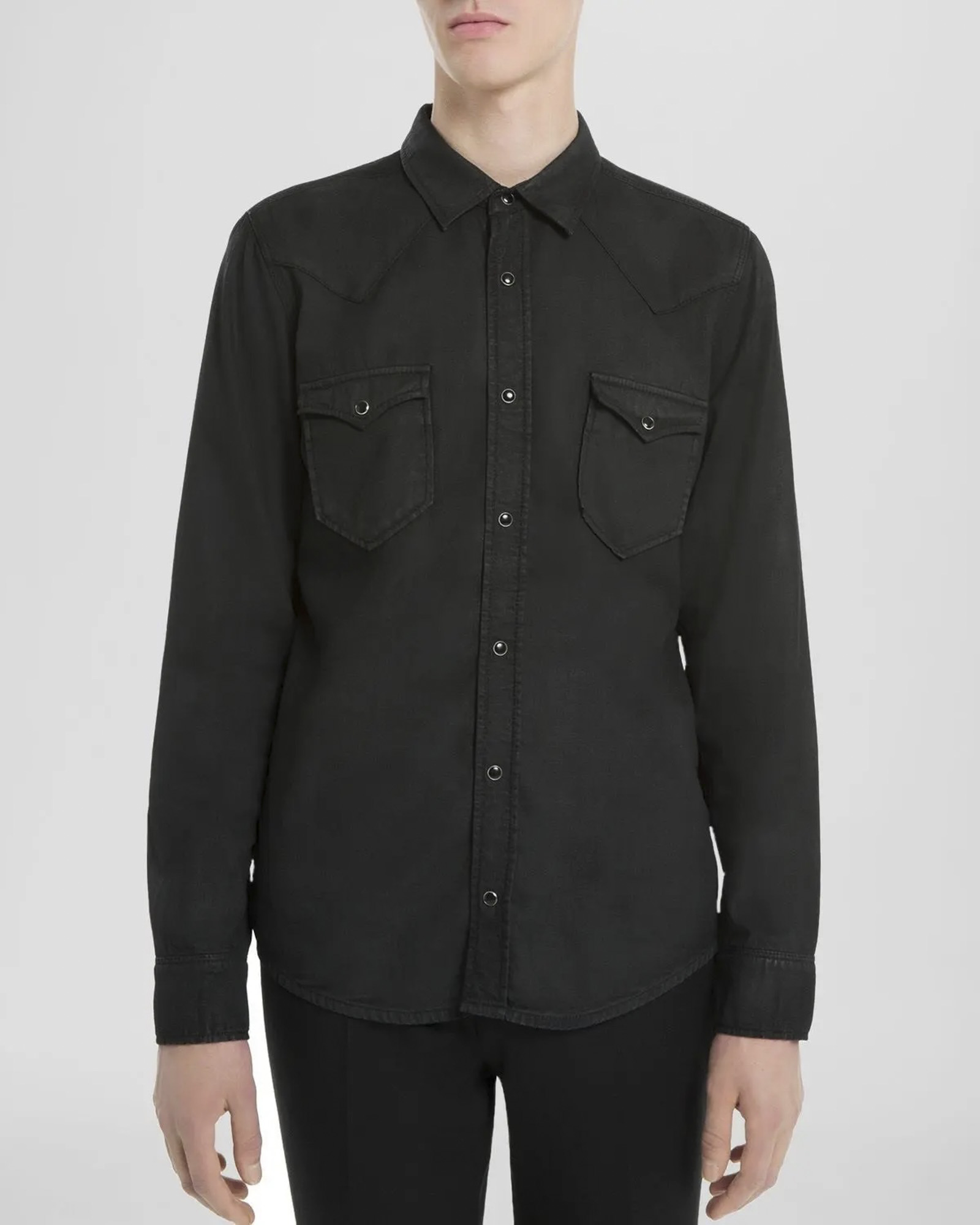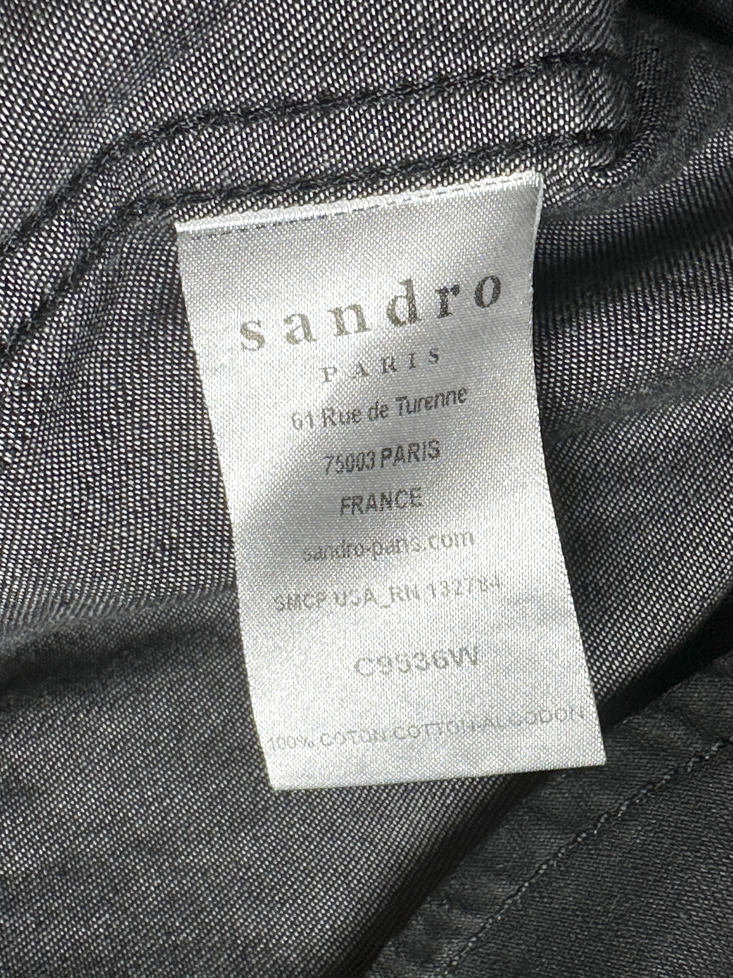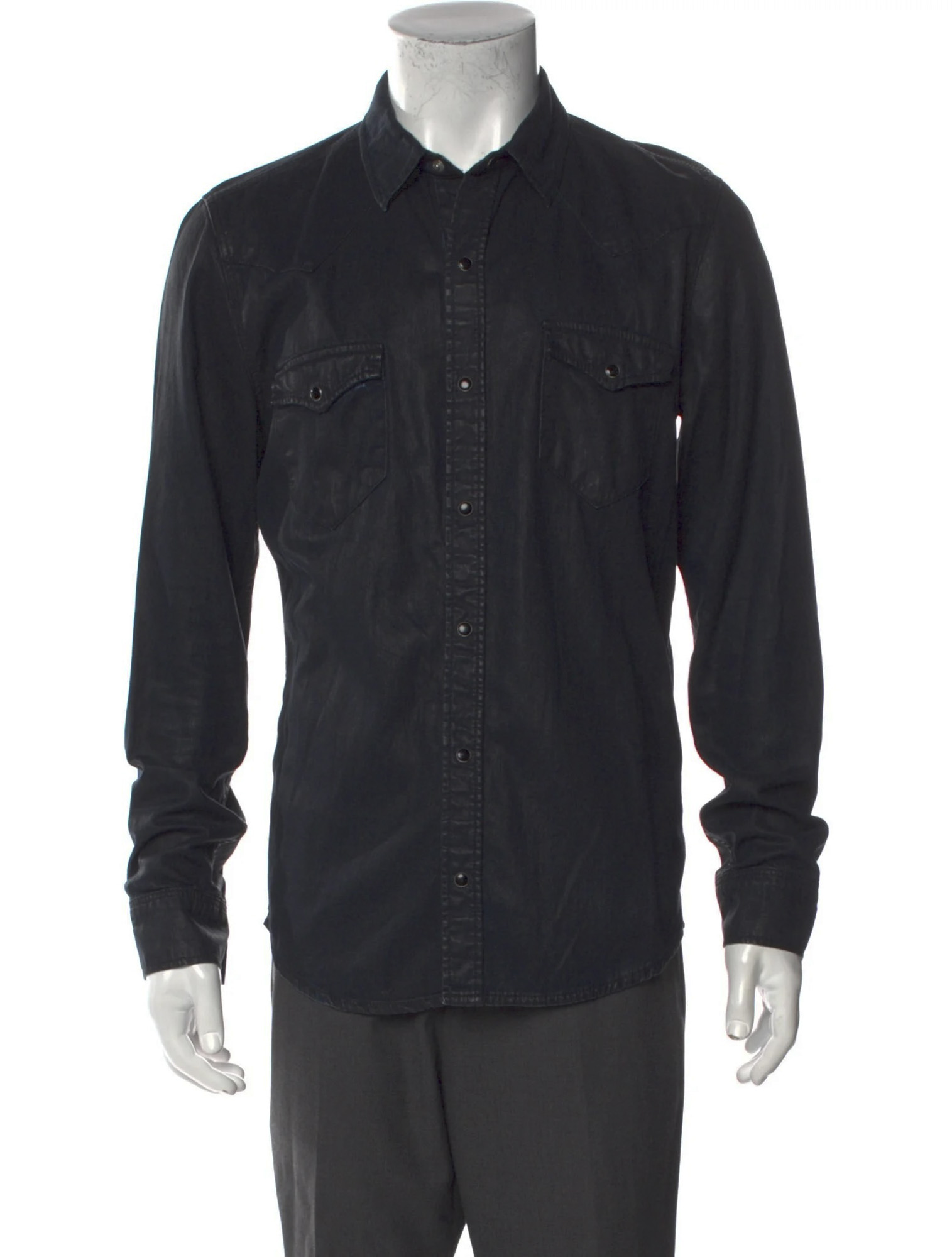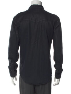 Sandro Men’s Black Waxed Denim Long Sleeve Western Shirt Size Small