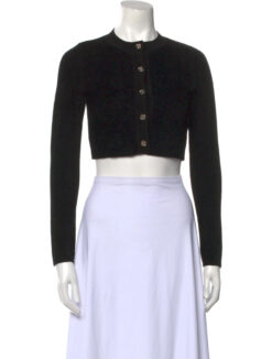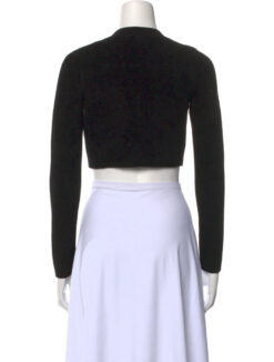 - Style: Black Cropped Velvet Effect Cardigan Sweater
